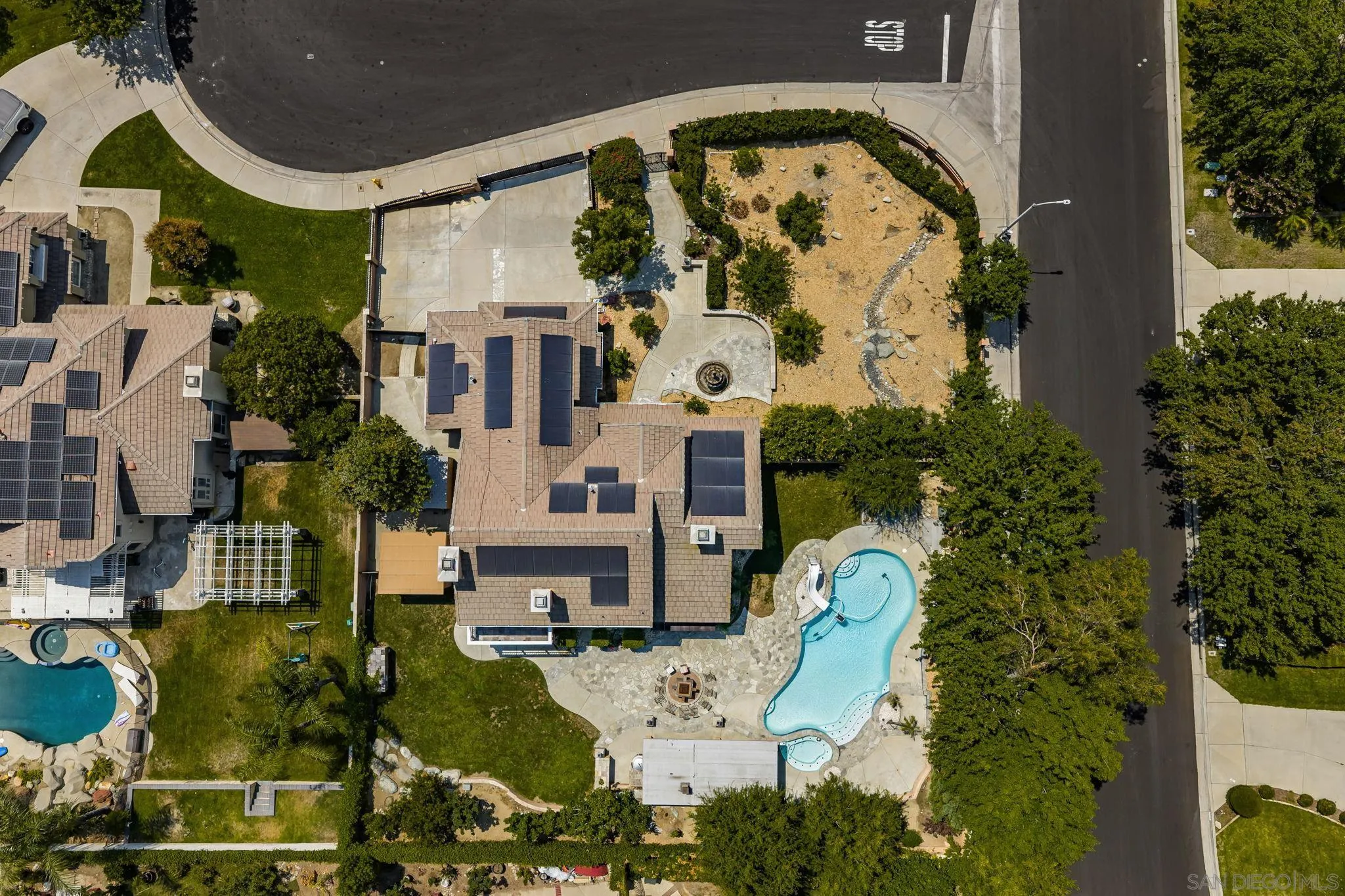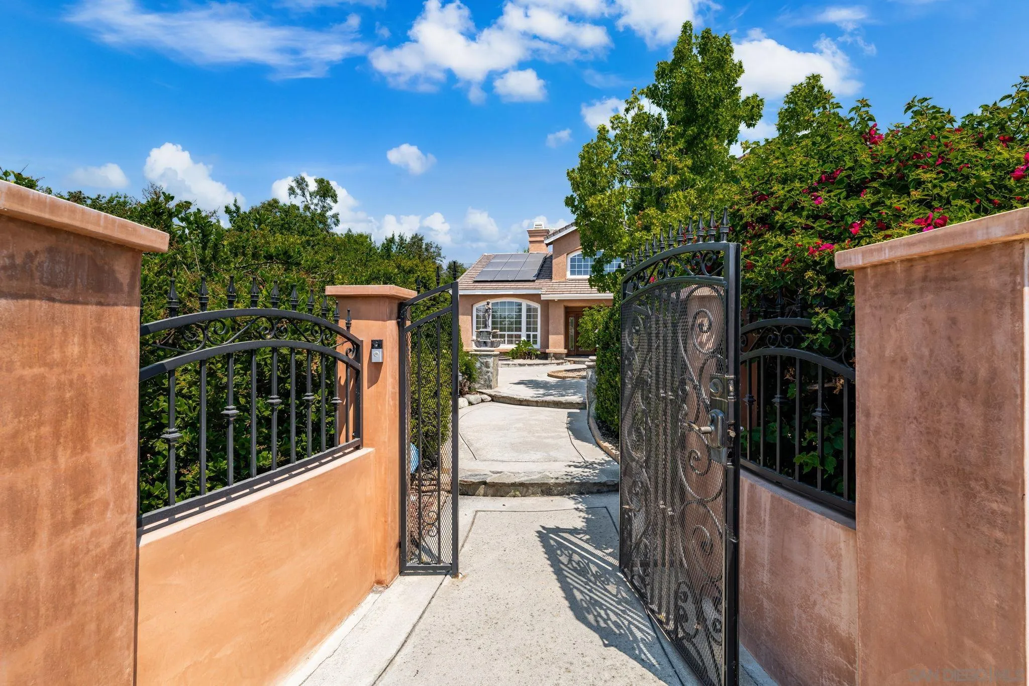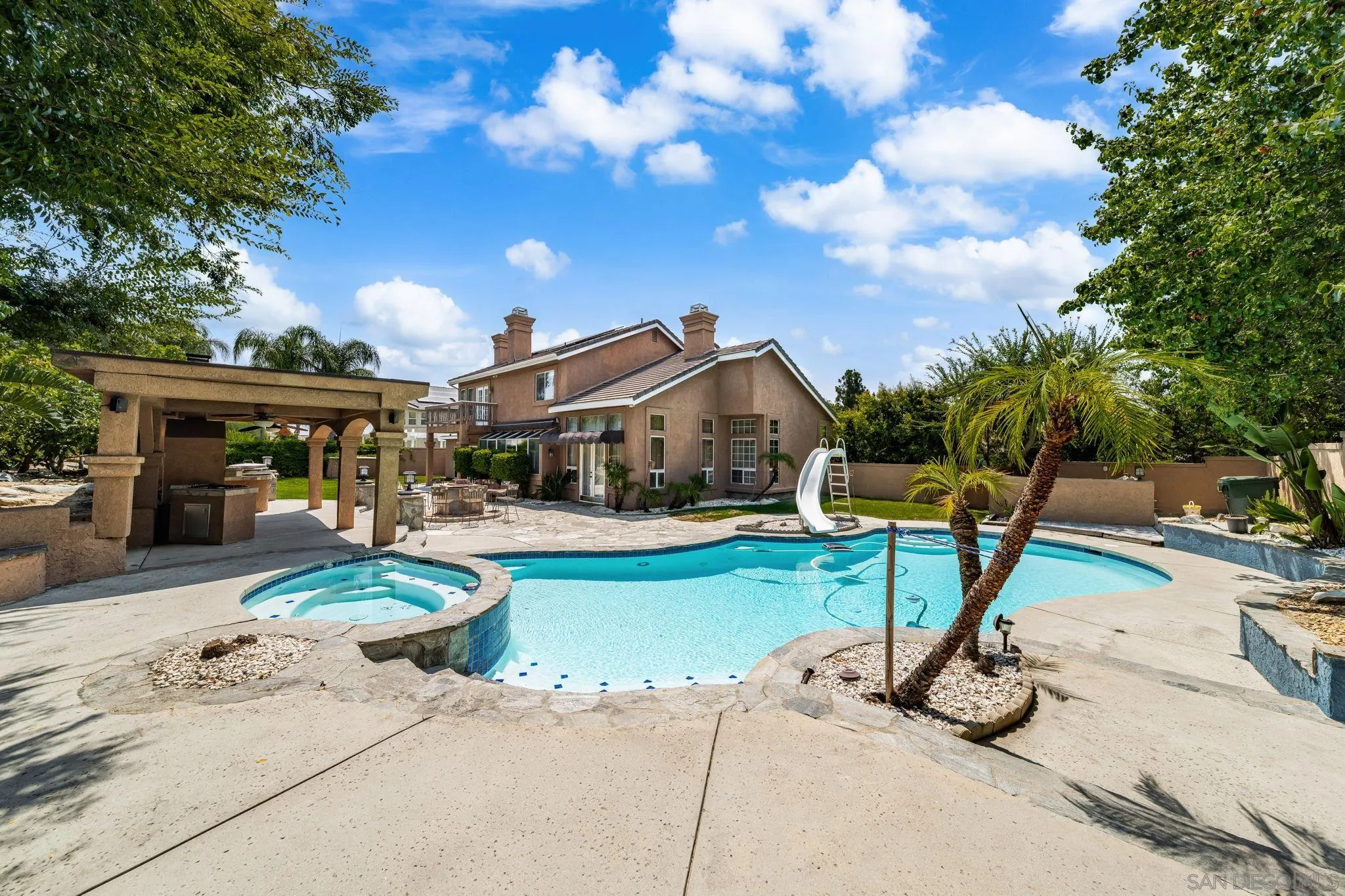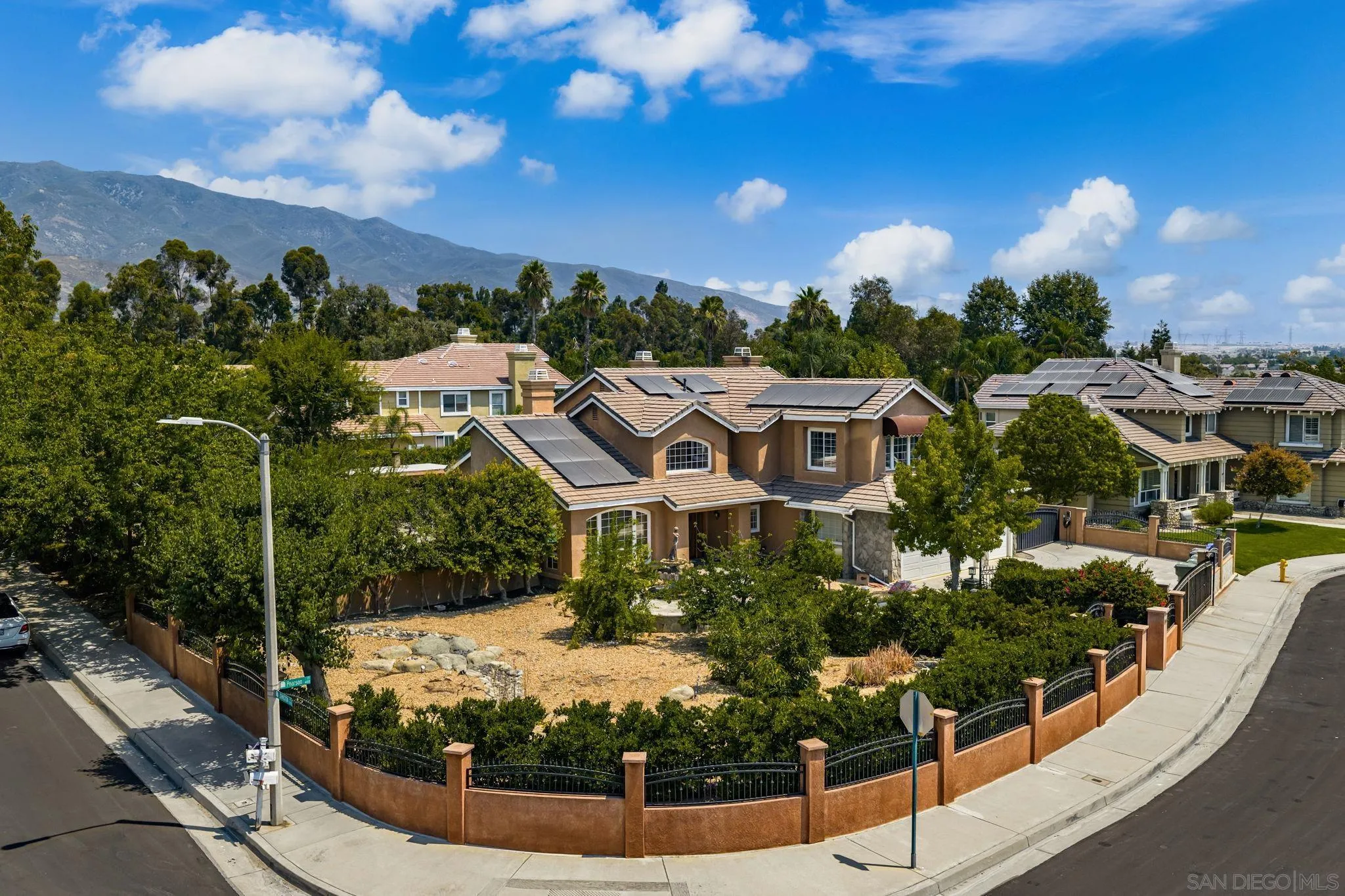 Welcome to your dream oasis in Etiwanda neighborhood. This stunning home showcases over 3,074 square feet of elegant living space with owned Solar, on a 16,200 sqft lot, thoughtfully designed to offer both luxury and comfort. As you enter, you are greeted by a formal living room and dining area, featuring an exquisite double-sided gas fireplace, perfect for cozy evenings and elegant gatherings. The gourmet kitchen is a chef's delight, complete with a central island and abundant counter space, seamlessly flowing into a warm family room with its own fireplace. On the main floor, you'll find a convenient bedroom and full bath, ideal for guests or a home office. Retreat to the luxurious master suite, where relaxation meets elegance. Enjoy the warmth of a private fireplace or step out onto your personal balcony to savor stunning views. The master bathroom is equipped with dual sinks, two expansive walk-in closets, and a separate tub and shower. Two more bedrooms upstairs with a Jack n Jill bathroom set up. Step outside to the unparalleled backyard oasis! Dive into the refreshing pool with a slide, unwind in the spa, or host a memorable dinner at the built-in outdoor kitchen. The kitchen features a BBQ, stovetop, wood-burning pizza oven, and EVO grill top, making alfresco dining a breeze. Additional amenities include a versatile shed and an extra space that could serve as a man cave or office. Set on a large lot adorned with amazing fruit trees, this home offers breathtaking views of the mountain caps. Home boasts a 3-car garage, solar panels, and car chargers... A MUST SEE HOME