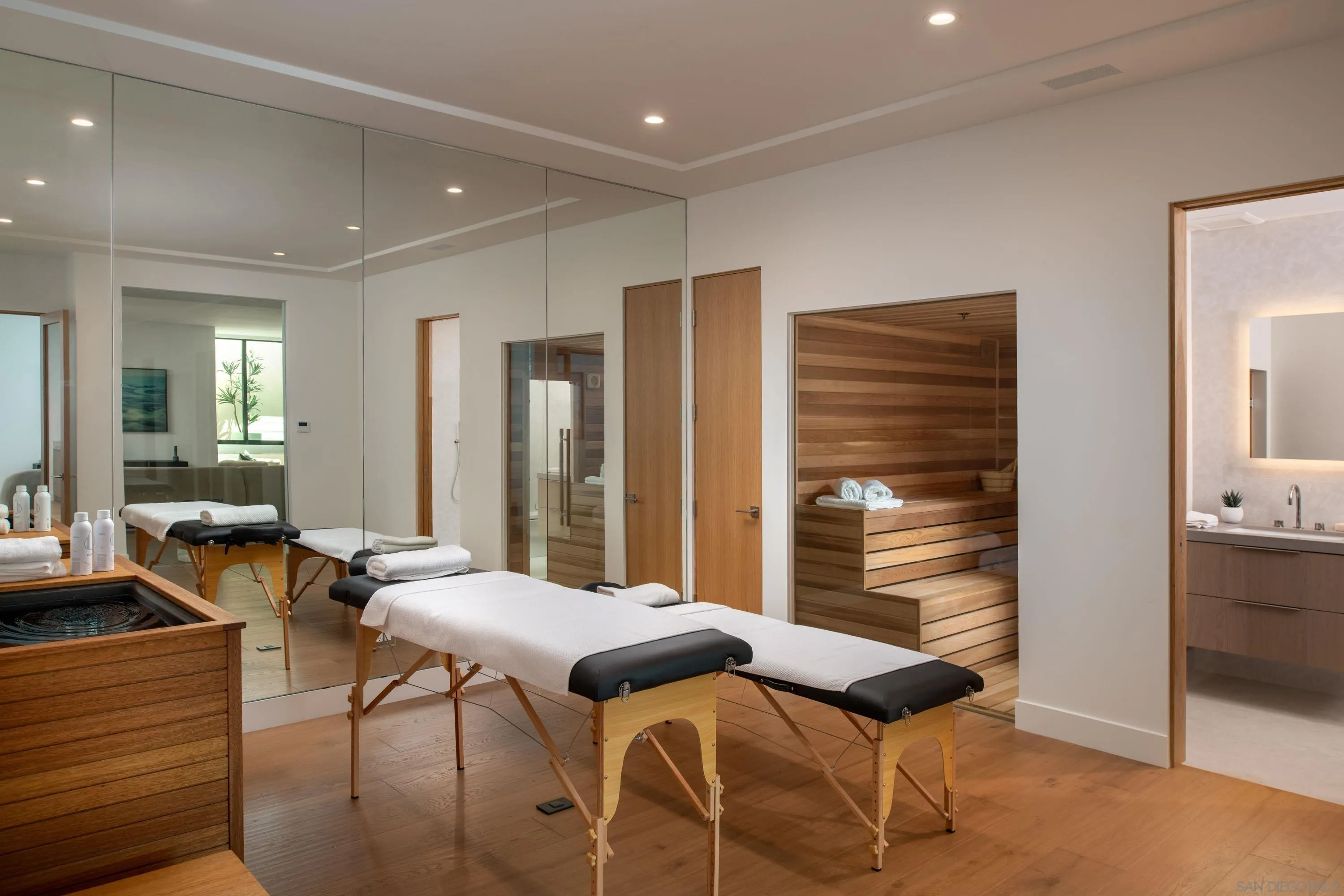 Seller will entertain offers between $9,700,000 - $10,700,000. Envisioned by one of Del Mar's most celebrated architectural visionaries and designed in collaboration with a leading California luxury home builder, this incredible contemporary home in Olde Del Mar features 4 bedrooms, 4 full baths, and 2 half baths, seamlessly blending modern elegance with the natural beauty of the Pacific coast. The home’s westerly orientation captures sweeping ocean vistas extending to La Jolla, while maintaining a level of privacy rarely found in this coveted area. Stepping through the 8-foot-wide entry pivot door, you’ll be greeted by soaring 10-15 foot ceilings, clerestory windows, and disappearing nano doors that dissolve the boundaries between indoor and outdoor spaces. Flooded with natural light, this residence is the ultimate embodiment of the elevated Del Mar beach lifestyle. Crafted with the finest materials, the thoughtful design incorporates artistic angles balanced by organic wood and stone elements, creating a serene coastal sanctuary. The expansive living spaces flow seamlessly to the outdoors, where a pool with spa, firepit, and multiple lounges await for enjoying sunsets over the ocean. Exceptional features include a state-of-the-art wellness retreat, complete with a gym, sauna, cold plunge, shower, and provisions for a juice bar. The home also boasts an executive office, a game room lounge with space for a home theater, an entertainer's bar, and temperature-controlled wine storage.