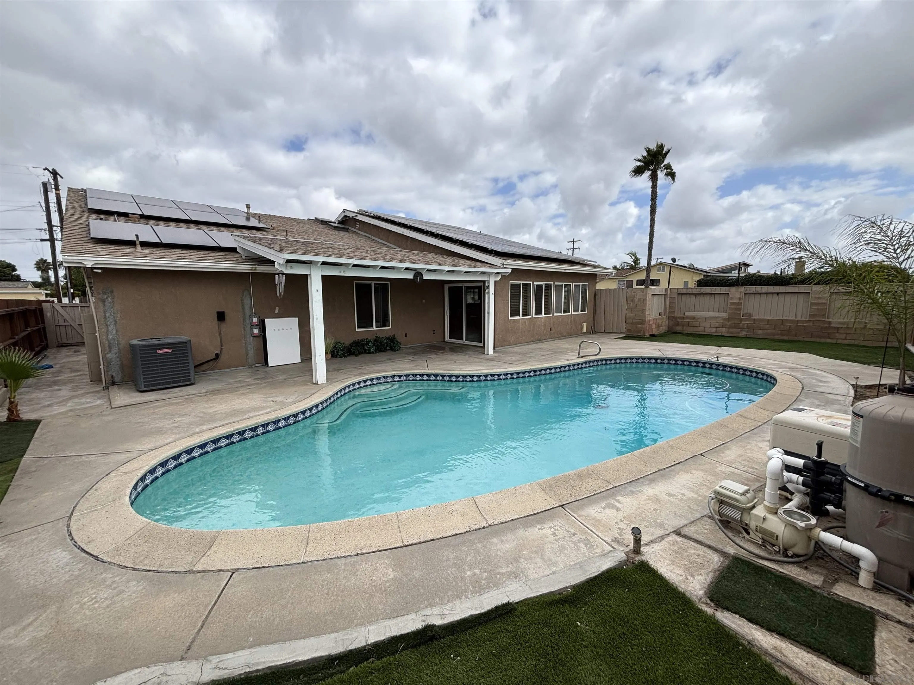 Probate Sale. Fully remodeled in 2009, with an open floor concept with high ceilings. Covered patio and pool ideal for entertaining. Fully rebuilt from the slab up in 2009 (minus 2 walls), modern & technological amenities throughout. Dual pane windows, recessed lighting throughout the house, Sun Run solar panel system with Battery, under power purchase agreement, up graded furnace and AC units, 75-gallon water heater, Water Boy whole house water filtration system, central vacuum system, upgraded pool heater, wired for sound system w/ 6 zones & outdoor speakers, 9 camera DVR surveillance system, and server closet that acts as termination point for 24 CAT-6 & RG-6 cable runs covering the entire house. The majority of the living space features 18" ceramic tile that looks similar to travertine and the bedrooms feature neutral-toned carpet. The kitchen in this home is simply breathtaking, featuring exotic slab granite counters and back splash, shaker style maple cabinets, high-end stainless steel appliances including Kenmore Elite refrigerator, double oven, dishwasher and a high-tech induction range with pop-up exhaust fan.