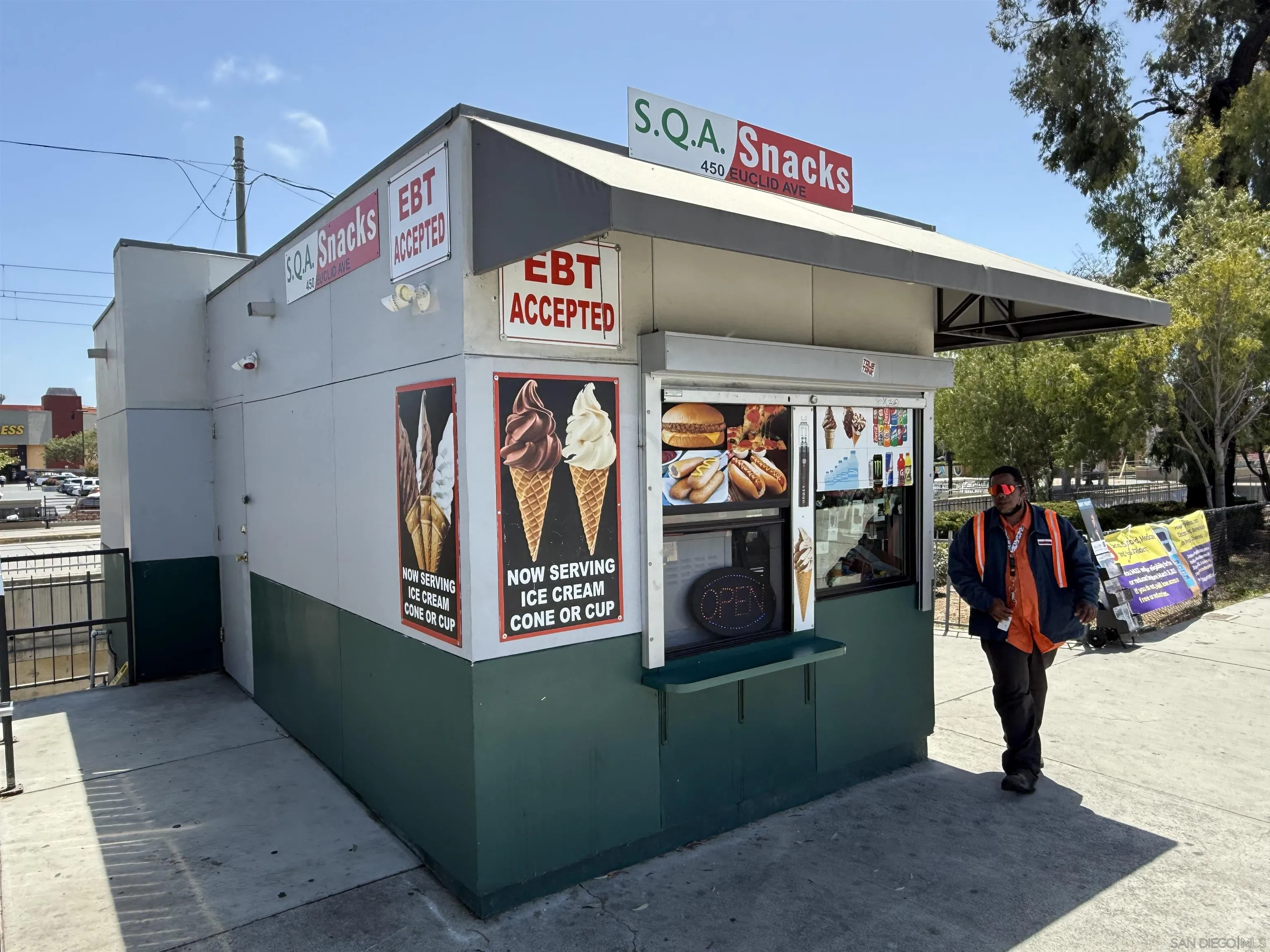 Great location, with restaurant, cigarette and e-cigarette licenses. Perfect opportunity to own a retail convenience store including the building between the SD Trolley and bus station on Euclid Ave. $17K-$20K monthly gross sales with extended hours will have higher gross sales. The store was built in 2020 with many potentials. All retails, snacks with restaurant license, selling pizza, burger, hot dogs, corndog, coffee, sodas, Ice cream, cigarette and e-cigarette sale and licenses, cell phone accessories and so much more. Long term lease, low monthly ground lease which includes the unitalities. All equipment is included.