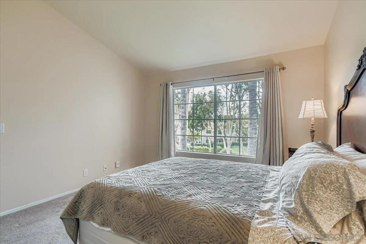 Top-Level Condo with Panoramic Views in Belsera, Tierrasanta! Welcome home to this beautifully maintained 2-bedroom, 2-bath condo in the sought-after Belsera community of Tierrasanta. This top-floor corner unit offers panoramic views, a private balcony, and a spacious living area with vaulted ceilings that create a bright, open feel. The upgraded kitchen features Quartz countertops and a newer refrigerator, while the primary suite offers an ensuite bath with Quartz countertops and a generous walk-in closet. Comfort is a priority here—enjoy the extra-large, newer HVAC system (installed in 2021) that keeps the home cool and efficient year-round. Additional highlights include a full-size washer and newer dryer, an attached one-car garage, and an assigned carport space. The Belsera community offers resort-style living with two pools, spas, volleyball courts, and scenic walking trails. Located just minutes from Mission Trails Regional Park, shopping, dining, and convenient freeway access—this home combines modern upgrades, low-maintenance living, and a peaceful natural setting. Come see why Belsera is one of Tierrasanta’s most loved communities!