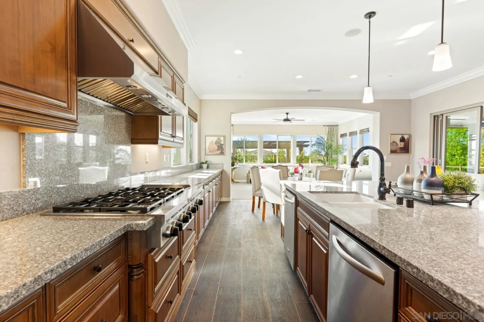 Welcome to 41770 Knoll Vista Lane, an exceptional single-level estate offering 4 bedrooms and 4 baths on 2.17 acres within the prestigious gated community of The Groves in Temecula’s renowned wine country. Crafted for those who appreciate sophistication and serenity, this residence showcases vaulted ceilings, open-concept living spaces, and a seamless flow between indoors and out. The gourmet kitchen is the heart of the home—appointed with premium appliances, custom cabinetry, and an expansive center island—opening through La Cantina doors to an elegant outdoor living area with a fireplace, perfect for gatherings under the stars. Each bedroom includes its own ensuite bath, while the primary suite offers a spa-inspired bathroom and private access to the outdoors. The grounds are a private sanctuary featuring an outdoor spa, pergola-covered seating areas, and lush landscaping accented by grapevines and mature trees. A Tesla solar system enhances energy efficiency while maintaining the home’s commitment to modern comfort and sustainability. Surrounded by tranquility yet minutes from world-class wineries, fine dining, and golf, this extraordinary estate embodies the pinnacle of Temecula luxury living—where timeless elegance meets contemporary design in one of Southern California’s most coveted communities. Experience the lifestyle you’ve been dreaming of and schedule your private tour today.