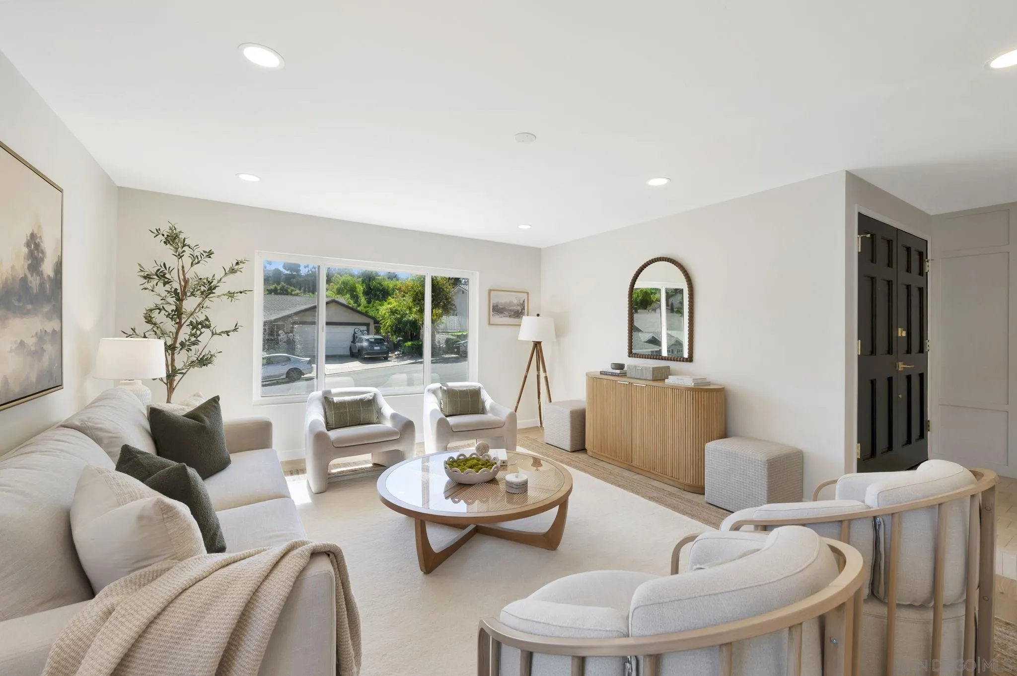 Welcome to this freshly remodeled 3-bedroom, 2-bathroom single-story home in the heart of Rancho Peñasquitos, located within the highly sought-after Poway School District. Inside, you’ll find custom paneling, accent lighting, and stylish LVP flooring throughout. The kitchen features quartz countertops, oak-finish cabinets, and new stainless steel appliances. Additional upgrades include a brand-new HVAC system for year-round comfort. French doors open to a backyard with hill views, a charming outdoor pergola, and fresh sod, while the front yard showcases beautiful native landscaping, creating inviting curb appeal and effortless maintenance.