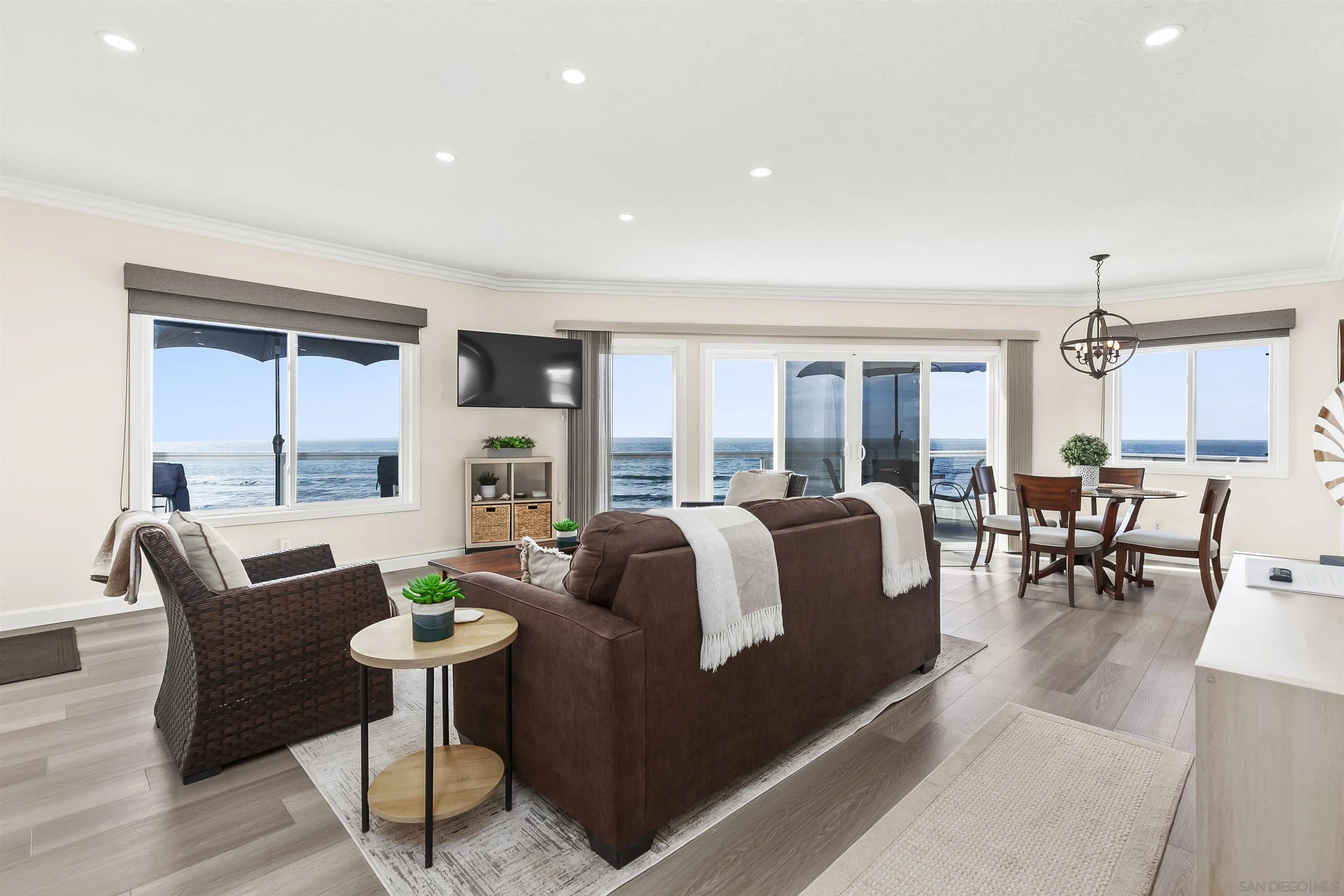 Rare true oceanfront income property in Sunset Cliffs with sweeping ~280° sit-down ocean views, exceptional privacy, and beautifully renovated, turn-key interiors. Includes four upgraded 2BR residences plus two well-finished bonus studio units, offering excellent flexibility and income potential. Renovations from 2020–2025 include quartz counters, stainless appliances, LVP flooring, updated baths, dual-pane windows, and cohesive coastal-modern finishes. Three residences perform strongly as VRBO short-term rentals, while the remaining units are month-to-month long-term rentals with significant upside. Additional highlights: rare 4-car garage, new garage doors, new staircases, and multiple ocean-facing decks/patios.