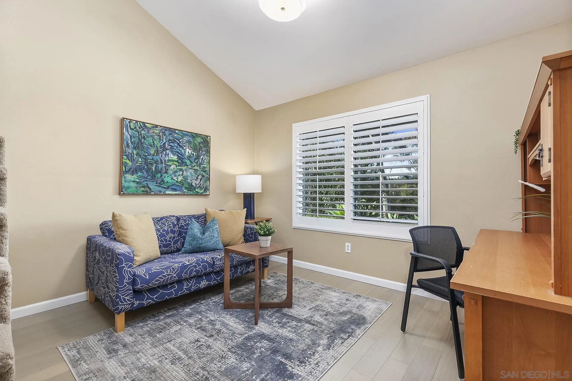 Conveniently located for commuters, this beautifully remodeled 3 bedroom, 2 bath end-unit townhome. Primary on the main level.Highly sought-after Villa Monterey community offers both accessibility & serenity. The surprisingly quiet interior benefits from upgraded dual-pane windows that minimize outside noise and create a peaceful retreat. Beautiful canyon views are right outside your windows. The custom patio deck is in a category of its own made from environmentally friendly engineered bamboo. The living area, kitchen, and primary bedroom each open through plantation shutters which are throughout the home. Step inside to discover bright, cheerful spaces ready for your personal touch. The open-concept floor plan, 36-inch wide doorway to the first-floor primary suite and bathroom, and spacious layout ensure easy accessibility throughout. The custom kitchen is a standout, featuring natural stone counters, updated lighting, and premium appliances: Viking gas cooktop, Dacor electric oven, Bosch dishwasher, travertine farm sink, built-in KitchenAid refrigerator, microwave, and pot filler — all framed by elegant Taj Mahal quartzite countertops. The primary suite offers vaulted ceilings, a skylight for stargazing, and a walk-in closet. Both bathrooms have been fully remodeled with marble, granite, subway tile, and custom glass doors. Additional highlights include a separate den or office, full-size laundry/utility room, newer interior doors, recessed lighting. A two-car detached garage provides abundant storage, and the community even offers on-site RV parking for $100 per month!