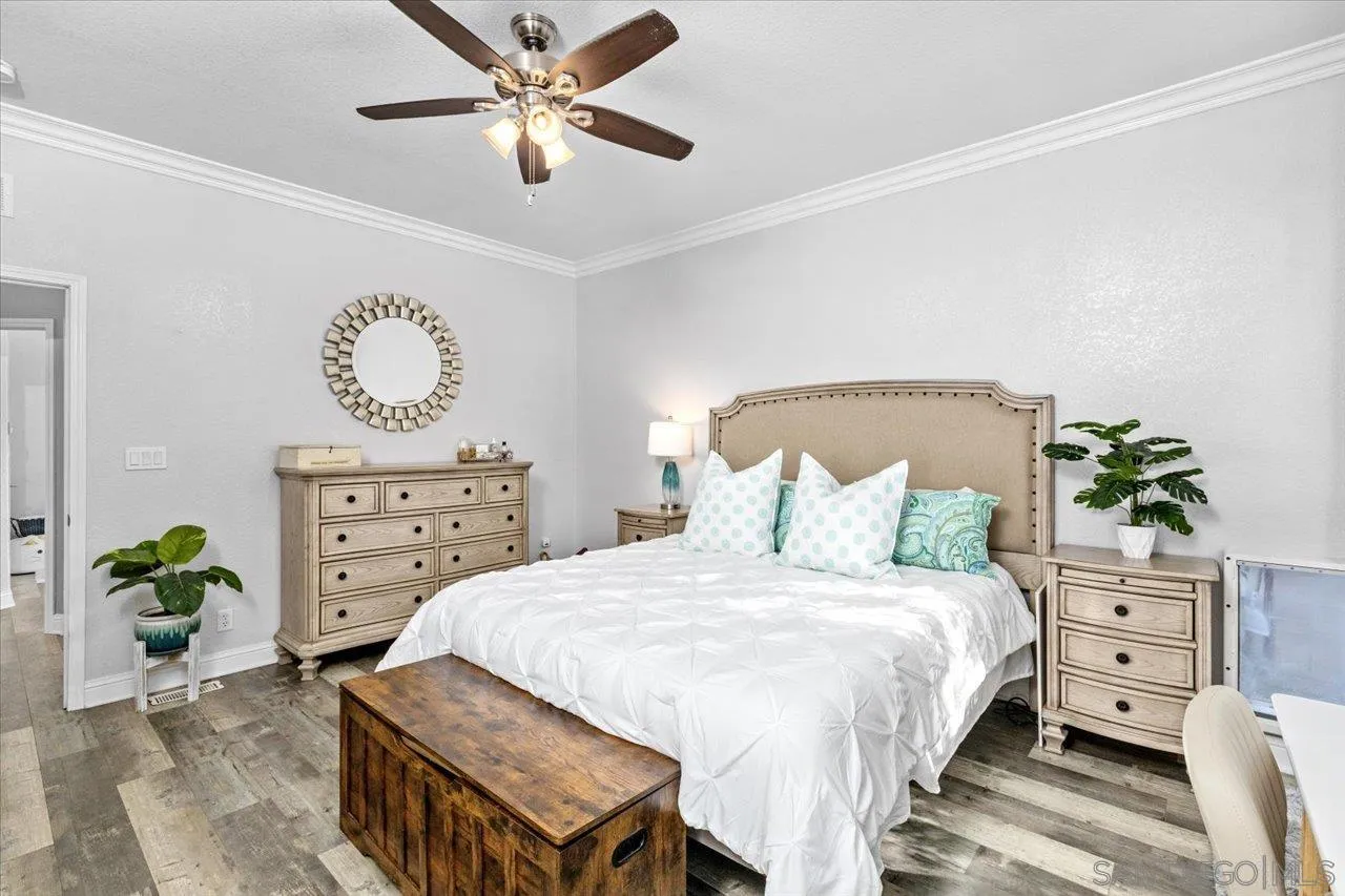 French Provencal Style W/ A San Diego Twist! This Beautiful Home offers a soft color palette with fun twists of color as accents! Kitchen is MADE FOR ENTERTAINING w/Massive Island, SS Upgraded Appliances, Stone Countertops & Beautiful Cabinetry! Upgraded Bathrooms, HUGE Laundry Room, Luxury Vinyl Plank Flooring Throughout! Large Side Yard with Turf, Mature Trees, Retractable Awning for Shade & Deck! Backs up to OPEN SPACE for privacy!