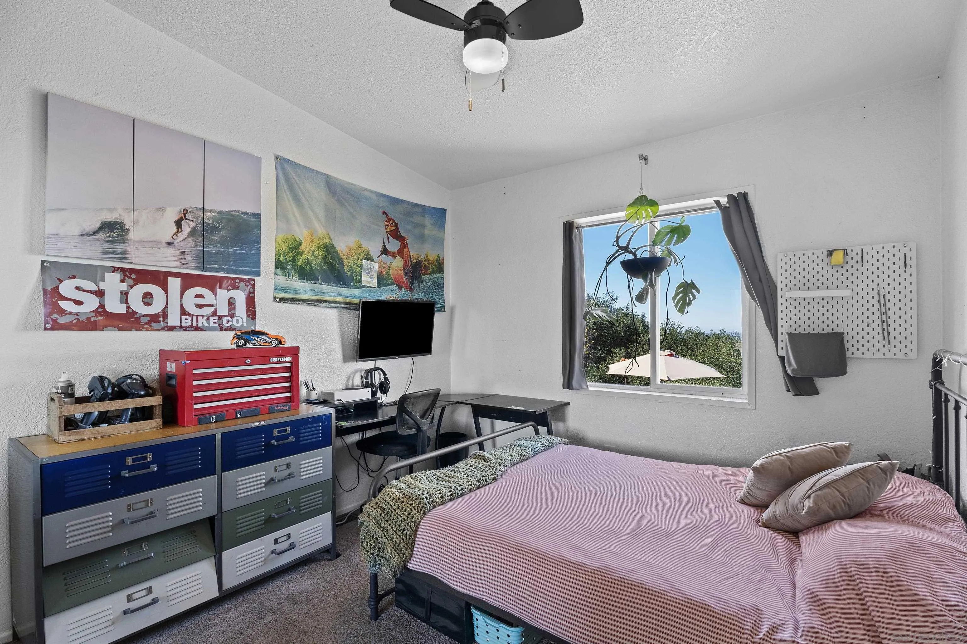 Situated at the end of a private road in a gated community, this elevated hilltop retreat offers rare privacy, sweeping city, mountain and valley views, all set in a peaceful, park-like setting. This three bedroom manufactured home is located in a private, gated 27-space community in the highly desirable Crest neighborhood. Positioned at the very end of the road, the property offers exceptional privacy with gated parking for approximately 3 - 4 Vehicles, depending on size. The elevated setting provides breathtaking city, mountain and valley views from the living room, primary bedroom, guest bedroom, and front yard. The exterior offers a serene, park-like atmosphere featuring natural boulders, gentle sloping terrain, and a grove of mature trees just beyond the front yard-ideal for relaxing, enjoying nature, or taking in the expansive views. Inside, the home features an open-concept layout with spacious kitchen, living room, and dining area designed to maximize light and views! Skylights, bay windows, vaulted ceilings and ceiling fans throughout enhance the bright and airy feel. The kitchen includes an island, ample cabinetry, and stainless steel appliances. A separate laundry room includes washer and dryer. French doors lead to a dedicated office with bay windows, offering flexible space for work or guests. The primary suite features vaulted ceilings, generous closet space, and an en-suite bath with a spa tub positioned among tranquil trees, mountains and city views! A wood-burning fireplace anchors the living area, adding warmth and character.