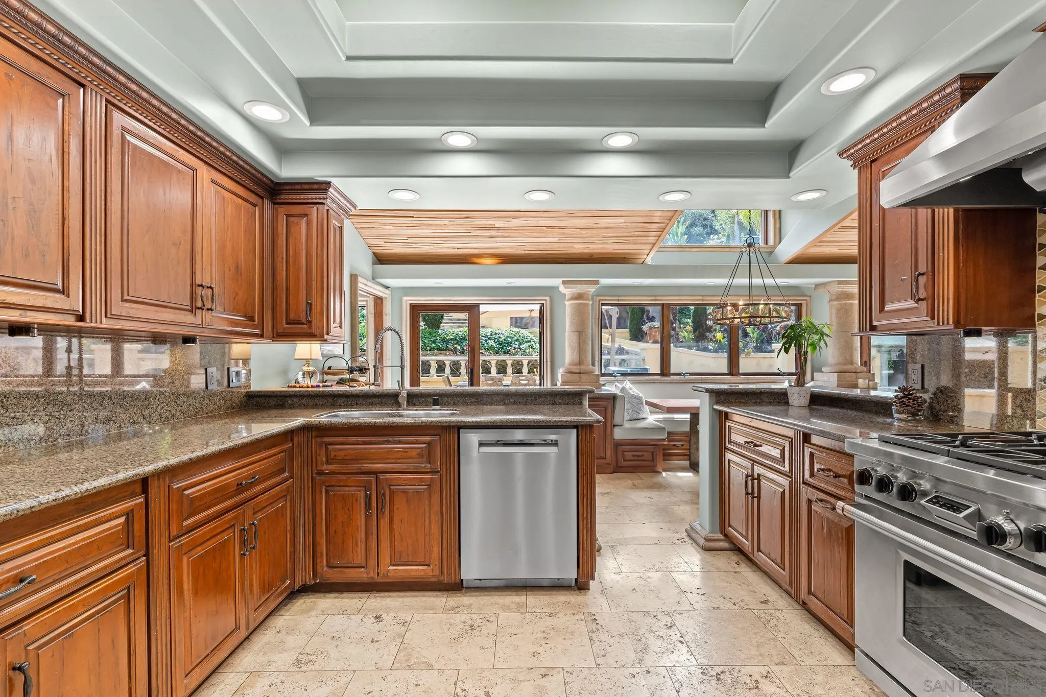 Private Resort-Style Single-Level Estate on Nearly One Acre with Detached Casita/ADU A rare opportunity to own a private, resort-style estate set on nearly one acre of beautifully manicured, park-like grounds, complete with a detached ADU/casita ideal for guests or extended family. The property offers an extraordinary sense of serenity and space, with meandering garden pathways, lush landscaping, and dramatic cascading waterfall features—all centered around a magnificent Torrey Pine that creates a truly breathtaking natural setting. Designed for effortless indoor-outdoor living, the bright and open floor plan features expansive patio doors that seamlessly connect the main living areas to the spectacular backyard retreat.