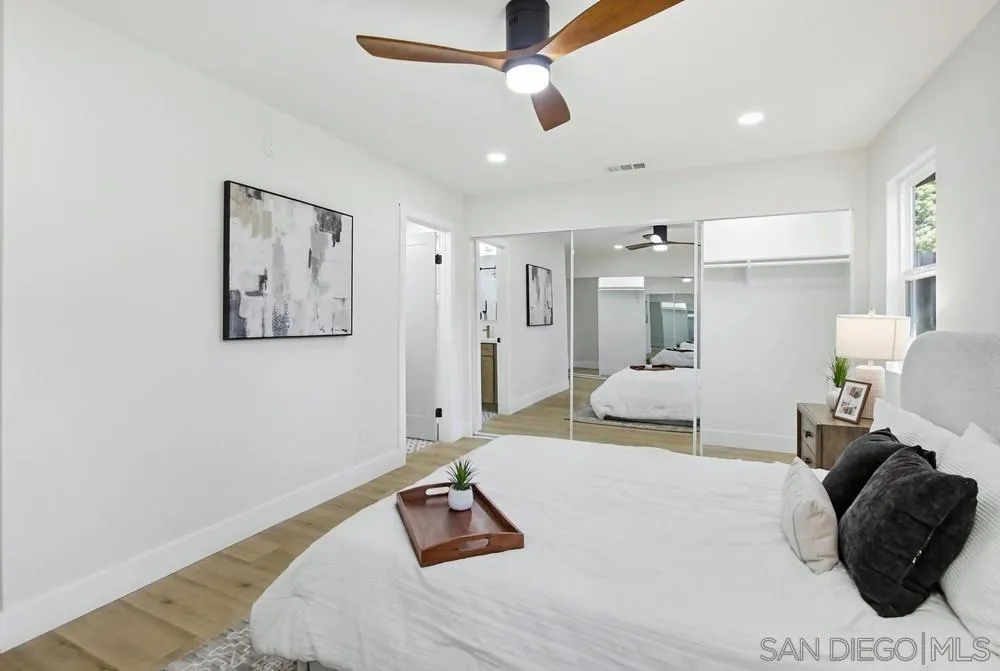 This thoughtfully reimagined single-story home is ideally situated in the heart of Rancho Peñasquitos and within the award-winning Poway Unified School District—just a short walk to Mt. Carmel High School. Beautifully designed with a refined, modern aesthetic, this home offers a seamless blend of style, comfort, and everyday livability. Inside, skylights, brand new HVAC and an open layout create an inviting ambience, while wide plank luxury vinyl flooring and recessed lighting bring a polished, contemporary edge. The living spaces flow comfortably, striking the right balance between openness and warmth. Designed with both function and style in mind, the kitchen features custom Oak Shaker cabinetry, quartz countertops, a designer tile backsplash, stainless steel appliances, and a premium 36" 6-burner range. A generous peninsula provides prep space and casual seating, making it ideal for gathering and everyday use. Bathrooms make a strong visual statement with a color drenching design approach, paired with crisp white subway tile, Oak Shaker double vanities, and modern fixtures. The result is clean, cohesive and spa-inspired look combined with function and practicality. The outdoor space offers room to relax, entertain, or personalize to your needs, while the finished garage is EV Car Charger ready with a 50 amp circuit. Set in one of North County’s most desirable neighborhoods, close to parks, shopping, dining, and major commuter routes, this home delivers a rare combination of style, location, and move-in ready convenience.