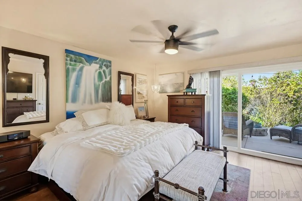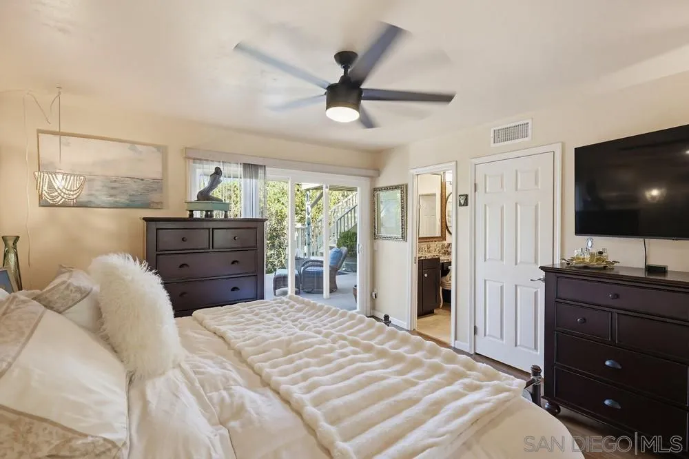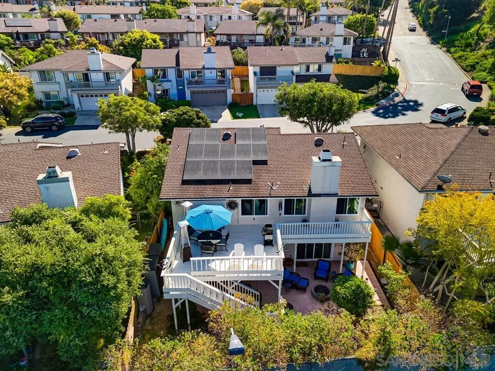 Located in the coveted Stonehaven community of Bay Ho, this 3 bed, 2 bath home offers 1,548 sq ft with a flexible multi-level layout and central San Diego location with convenient access to coastal amenities and beaches. The main level includes a bedroom and full bath, with two additional bedrooms and full bath on the lower level, offering separation of space and functional living. The updated kitchen features granite countertops and stainless steel appliances, with updated bathrooms throughout. Interior details include bamboo flooring, crown molding, dual pane windows and sliders, and ceiling fans. Outdoor living includes an elevated deck with sunset views and a lower-level fenced yard with fire pit, creating an ideal setup for outdoor dining and entertaining. Additional features include owned solar (approx. 3 years old), a new water heater, and a 2-car attached garage with direct access. Stonehaven amenities include a community pool and spa, tennis courts, playground, ponds with koi fish and fountains, and walking trails throughout the neighborhood. Stonehaven is a tucked-away community with mature landscaping and amenities that create a resort-style setting. Located near Tecolote Canyon Natural Park and a short drive to Mission Bay and local beaches, with convenient access to shopping, dining, University of San Diego, and I-5 and I-8.
