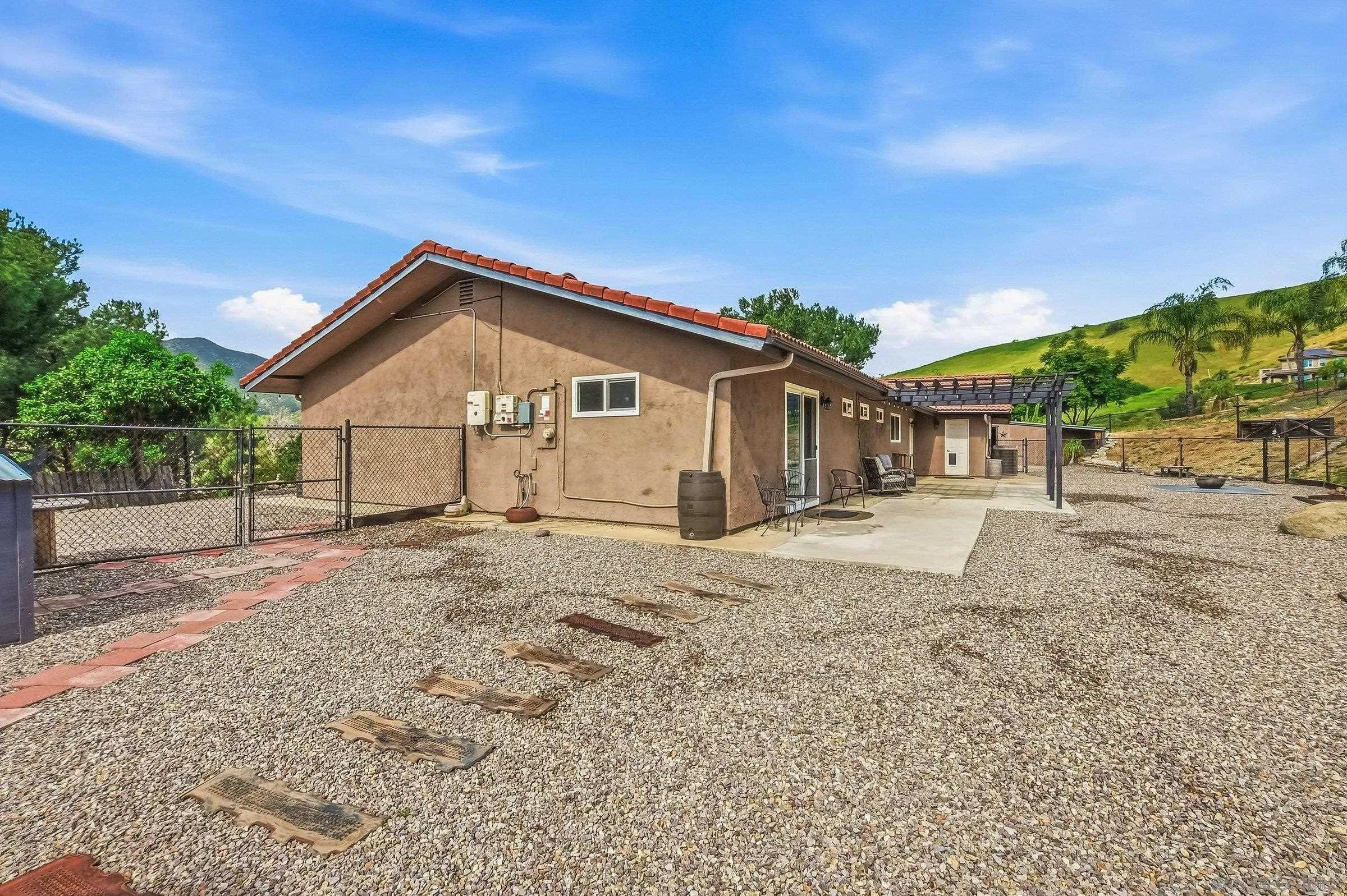 Couple photos are staged i.e. pool, (un-staged photos are also included). Embrace the tranquility of rural living without compromising on urban amenities with this stunning property at 1861 Vista De La Montana, El Cajon, CA 92019. Situated on over two acres of usable land, this fully upgraded and remodeled home offers a generous living space of 2,307 square feet and a lot size of 90,605 sqft. The house features three bedrooms and three bathrooms, including two master suites for added comfort and convenience. The spacious layout also includes two large family rooms – one being a new addition of 400 sqft that is fully permitted. A fireplace adds to the cozy ambiance, while a sizable dining area provides ample room for entertaining. The home has been thoughtfully updated with new tile flooring throughout, whole house fan, and new windows to let in plenty of natural light. In terms of utilities, the property boasts an all-electric system powered by 24 solar panels covering over 98% of all electric use. An efficient well provides clean water (with excellent testing numbers), virtually eliminating all utility bills (run the AC as long as you want and there is plenty of water from the well for the yard and house). From building a detached Accessory Dwelling Unit (ADU) or converting the garage into a Junior ADU to adding a custom pool and spa, the expansive lot offers endless possibilities. Located on a private road within a peaceful neighborhood, and minutes away from casinos, parks, schools, shopping centers, & restaurants.