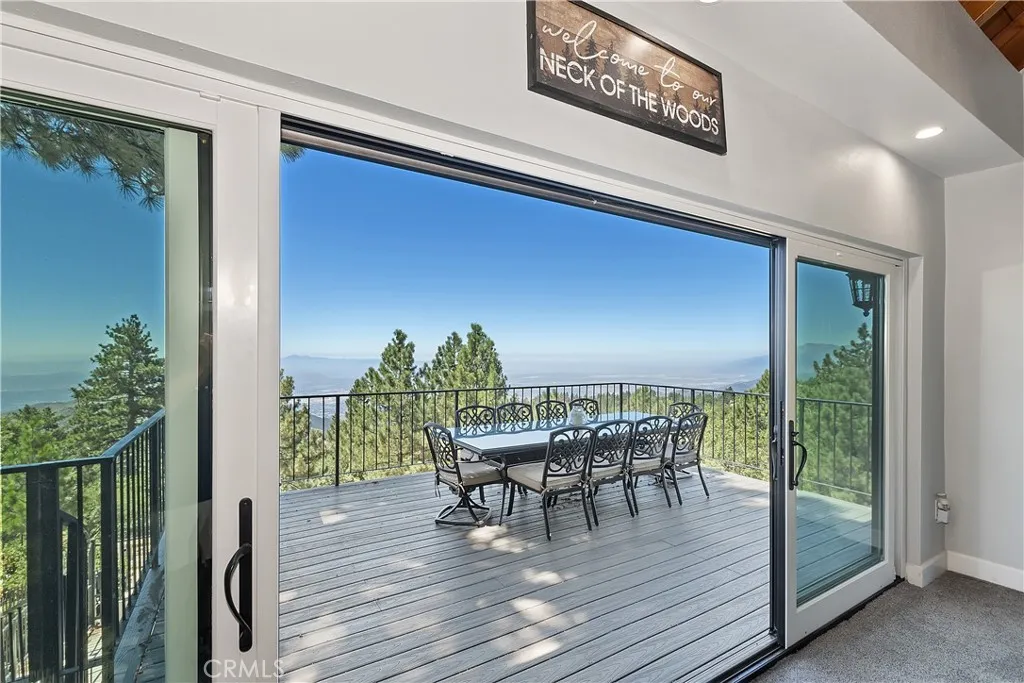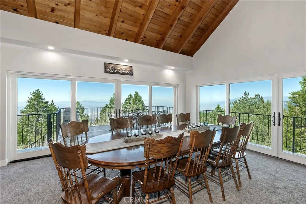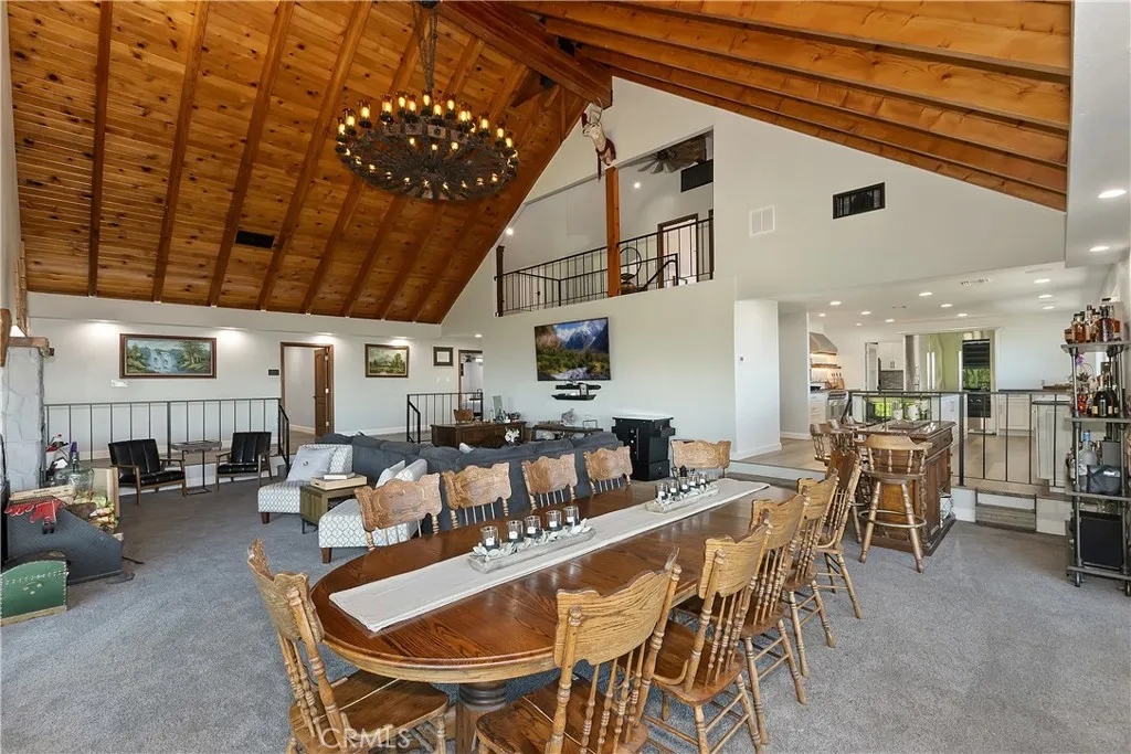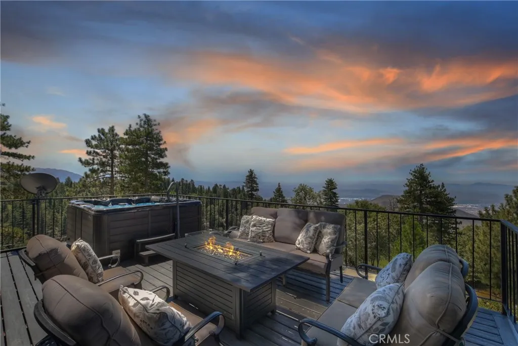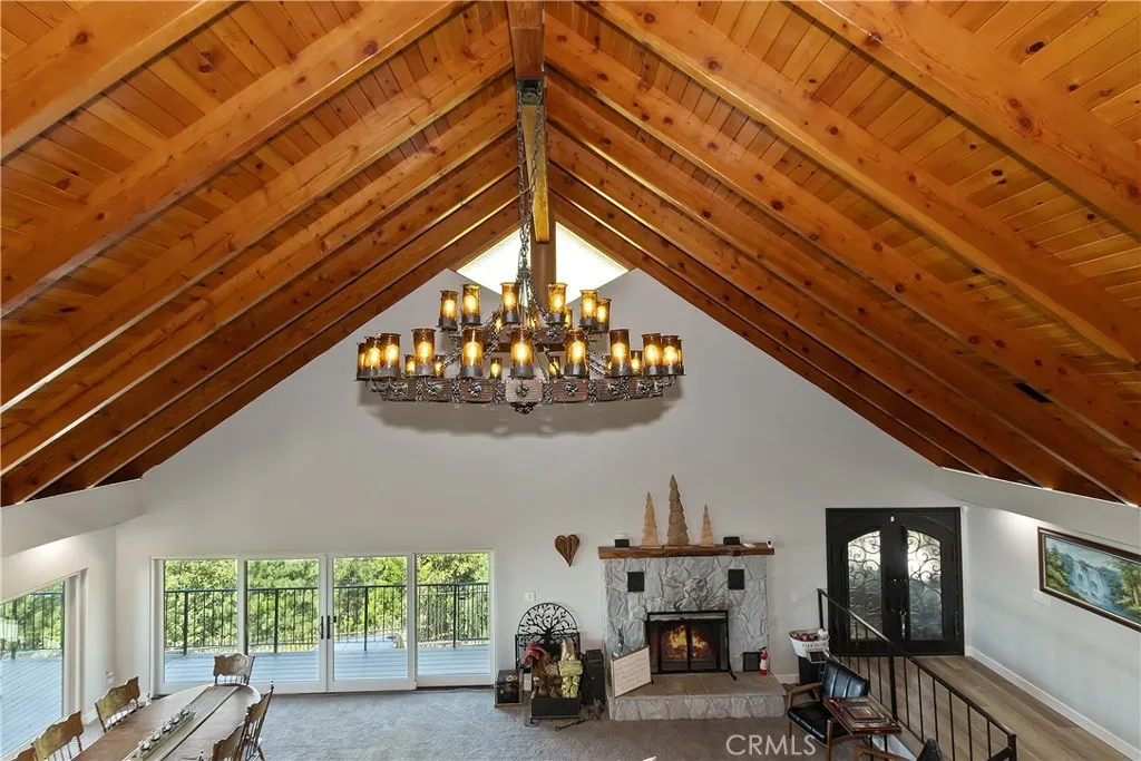 MAJOR PRICE ADJUSTMENT!!! One of a kind spectacular grand valley view/city lights view lodge on approx. 6.82 acres of lush mountain paradise near Running Springs and Snow Valley Skiing! Over 5,200 sq ft of gorgeous luxury living space with dramatic greatroom open floorplan, high vaulted T&G wood ceilings and breathtaking million dollar valley views! 6 bedroom, 5.5 bathrooms, game room/family room, bar area, laundry area, spacious top of the line chef's kitchen with high end stainless steel appliances, farmhouse sink, exotic quartz countertops, Buttler's Pantry and more. Two gorgeous primary suites both located on the main level. Beautiful rock fireplace in the spacious livingroom. Oversized two car garage (approx. 934 SQ FT) with workshop area and 1/2 bath. Abundant driveway parking for 15+ cars, boat parking, RV parking...bring all your toys! Potential for use as horse/equestrian property with almost 7 acres of usable land. New interior paint, flooring, updated electrical including full solar system, newer roof, new high efficiency heating/cooling throughout the home. New composite low/no maintenance siding. Ideal setup for a money making vacation rental. There are a total of 5 individual parcels with the potential for additional development or keep the way it is for your own private trails, orchard, vineyard, etc. The acreage is rolling with beautiful pines, oaks and cedars all around...perfect for exploring. Owners have beautifully landscaped this property with a mix of flowers, ornamental trees, fruit trees and more. There is a ton of outdoor living space with large vie