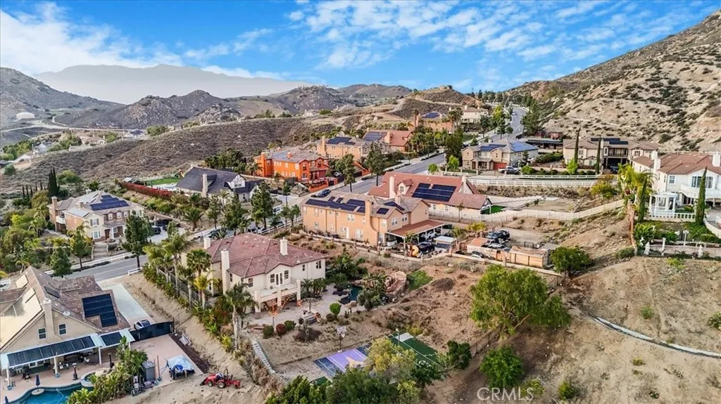 Welcome to Ridge Canyon Estatesone of Norco Hills most prestigious communities. Perched near the top of the neighborhood, this custom-built estate offers sweeping views of the valley, mountains, and twinkling city lights. A gated driveway leads to your private, peaceful retreat. Inside, soaring ceilings and a dramatic spiral staircase set an impressive tone. To the right, a private en-suite bedroom is ideal for guests or multi-generational living. To the left, a flexible room with its own across from the hallway bath that can serve as an office, gym, den, or additional bedroom. The formal living room features a custom fireplace and French doors opening to a serene water fountain. Adjacent, the formal dining roomwith its wine roomis perfect for entertaining, flowing seamlessly into the living area for elegant gatherings. Toward the back, The Great Room opens to the gourmet kitchen and offers built-in cabinetry, a cozy fireplace, and stunning backyard views. The chefs kitchen features stainless steel Viking appliances, a large center island, and a casual dining area overlooking the pool, spa, and dramatic cityscapemaking it the heart of the home. Upstairs, a spacious loft offers endless possibilities. The massive primary suite is a true retreat, complete with fireplace, sitting area, and private balcony to take in the breathtaking views. The spa-like primary bath features a dual-sided shower, Jacuzzi soaking tub, dual vanities, the best part unlike other homes in the area - private laundry, walk-in closets, and separate toilet room. Three additional bedrooms complete the uppe
