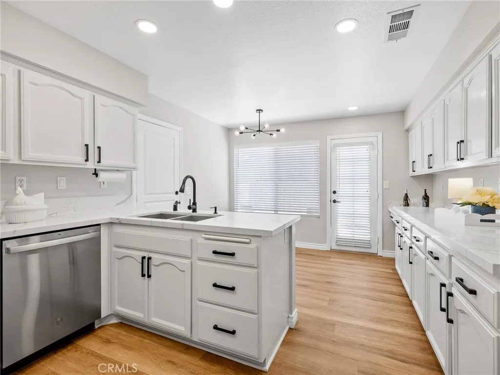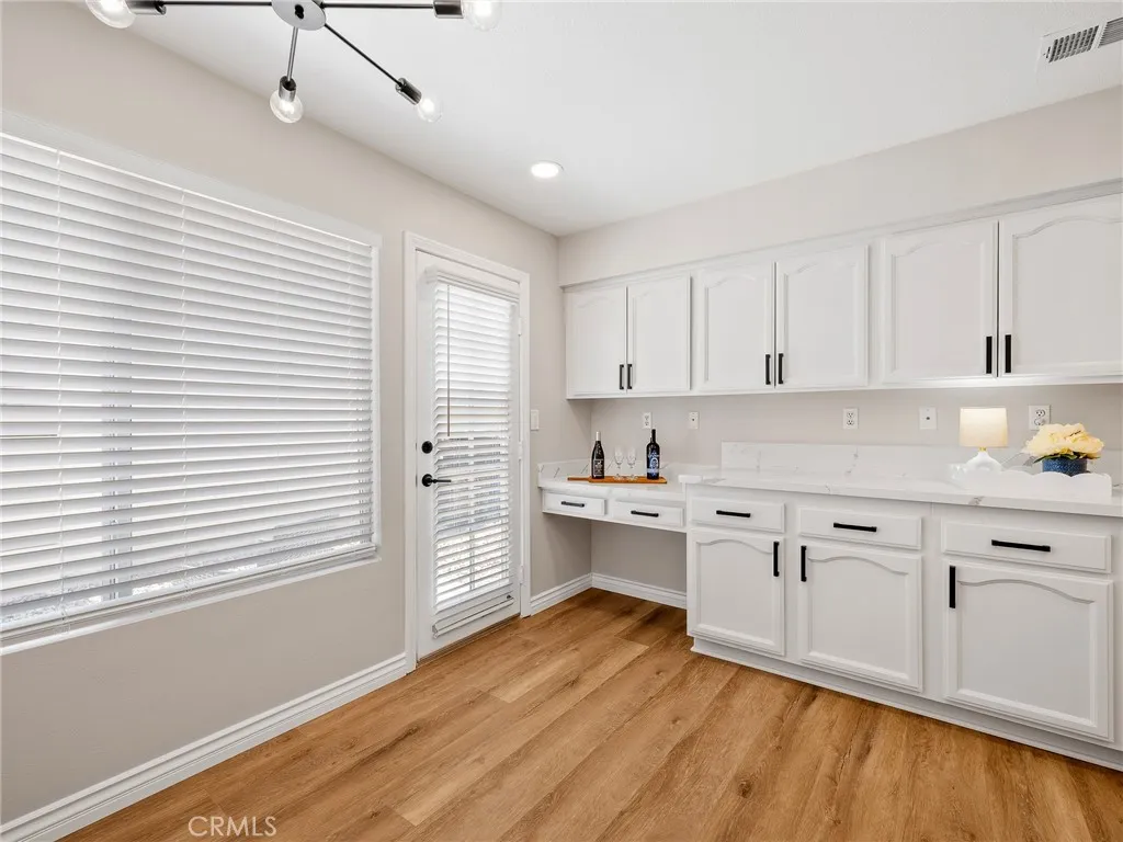 Welcome to this stunning 2-bedroom, 2-bath home in the desirable Wyndham Rose neighborhood of the 55+ Jess Ranch Community. Step inside this fully renovated beauty and youre immediately greeted by brand new laminate flooring throughout, all new paint throughout, all new window coverings, all new stylish lighting fixtures, and modern ceiling fans in both the living room and primary suite. The living and family rooms share a beautifully tiled, cozy double-sided fireplace, perfect for relaxing evenings. The light and bright kitchen has been completely transformed with quartz countertops, freshly painted cabinets with contemporary hardware, new stainless steel appliances, a large pantry, a small office workspace, and a French door leading to a convenient service porch. The spacious primary suite boasts a lovely bay window and a French door opening to a covered patio with peaceful greenbelt views and walking path accessperfect for pet owners. The primary bath features a soaking tub, a custom-tiled shower with a contemporary glass shower door, a quartz double-sink vanity, contemporary faucets, designer lighting, a skylight, and a huge walk-in closet. The second bedroom is equally inviting, with its own bay window and generous closet space. The updated second bath includes a contemporary glass shower door, quartz vanity, and modern finishes. Additional highlights include a laundry area with new cabinetry, a 2-car attached garage with a workbench and storage, a serviced HVAC system, and an exterior refresh with a serviced tiled roof, Cool Roof Coating on the patio, repainted trim,