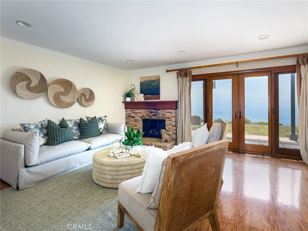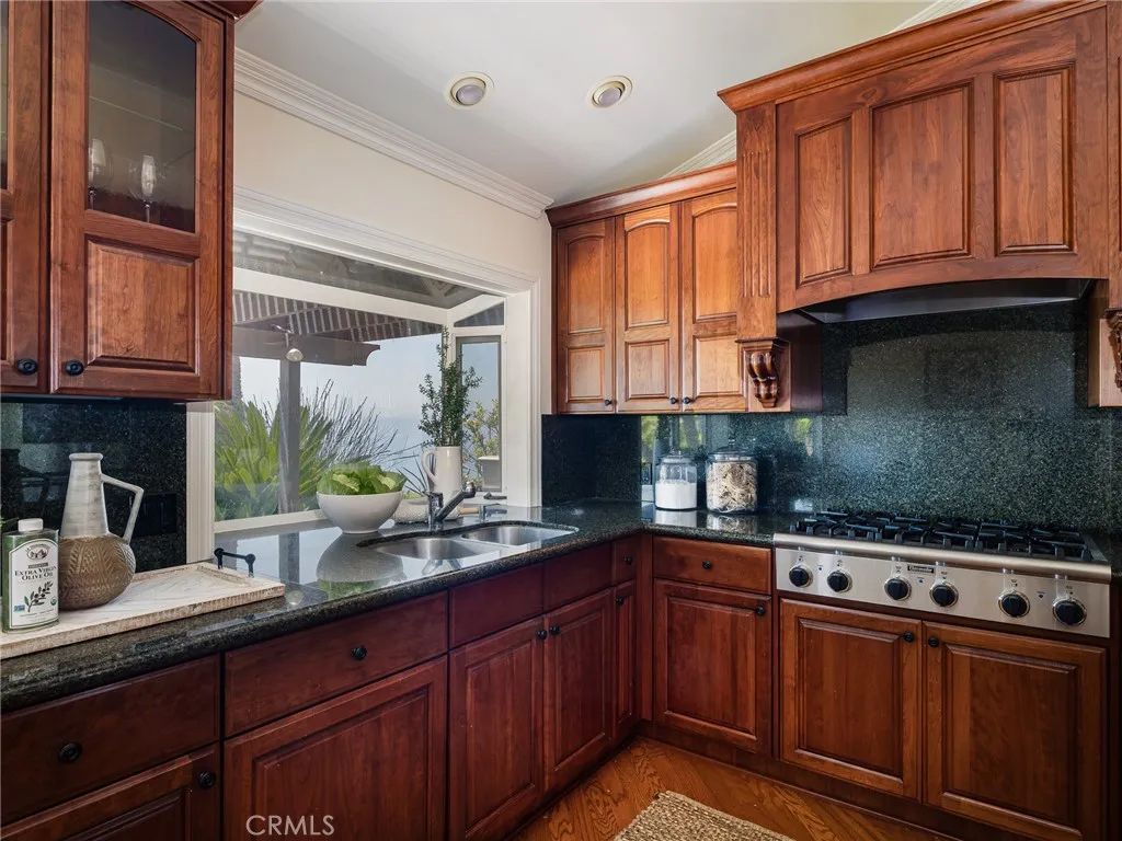 Welcome to this exquisite residence residing in Palos Verdes with sublime Pacific Ocean views touched by outstanding Peninsulas. Double-door entrance swings open to massively vaulted ceilings that welcome you to a vibrant front foyer with large seating. The house rises up to a formal dining area that glides into the gourmet kitchen that is enveloped with views. Thermador appliances complement the incased wood refrigerator and vent systems that completely blend with the surrounding cabinetry. The desirable wood accents continue into the flooring that lead to custom Pella doors that exhibit one of the best views the county of angels offers. Breathe taking picturesque oceanic views that completely encompass our little island, Mira Catalina. The yard is hugged by smooth stucco, Palos Verdes stone, custom BBQ, finished planters, and continued space for roaming in the grassy knoll, all while basking in the blue hues. The terrain transcends towards a wonderful deck, that finishes this experience. Jetting out off of the cliff and into the surrounding hillside is something to remember, being one of the only homes with this asset. Capturing pleasant up-drafts of atmospheric wind, world renown golf courses, Terranea resorts, immaculate Peninsulas, and cascading ocean air. 3-car garage. Sought-after award winning Palos Verdes Peninsula school systems are all welcomed to be enjoyed.