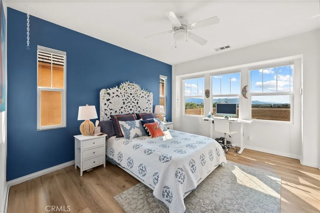 Welcome to 31808 Green Oak Way a beautifully upgraded and truly turnkey home in the heart of South Temeculas coveted Wolf Creek community with no rear neighbors! This 3-bedroom, 2.5-bath, 1,846 sq ft residence blends comfort, style, and convenience. From the moment you step onto the charming front porch, you're greeted by a light-filled open floor plan with luxury plank flooring throughout the entire home and fresh modern touches at every turn. The spacious kitchen opens seamlessly to the family room and features granite countertops, a walk-in pantry, ample cabinet space, a breakfast bar, and upgraded appliances including a newer refrigerator and dishwasher. The living and dining areas are perfect for entertaining or quiet evenings in, while a convenient downstairs powder room adds function for guests. Upstairs, youll find all three bedrooms, plus a dedicated laundry room equipped with cabinetry, a utility sink, and washer/dryer. The primary suite offers panoramic views, an expansive en suite bath with dual vanities, soaking tub, walk-in shower, and a large walk-in closeta true retreat. The list of recent upgrades continues with a newer A/C system, water heater, toilets, and sinksgiving you added peace of mind and value. Step outside to a private backyard patio designed with custom pavers and proper drainage, perfect for al fresco dining, pets, or simply unwinding while enjoying the South Temecula sunsets. With low-maintenance landscaping, your weekends can be spent relaxingnot working. Located just steps from one of the communitys resort-style pools, and within walking di