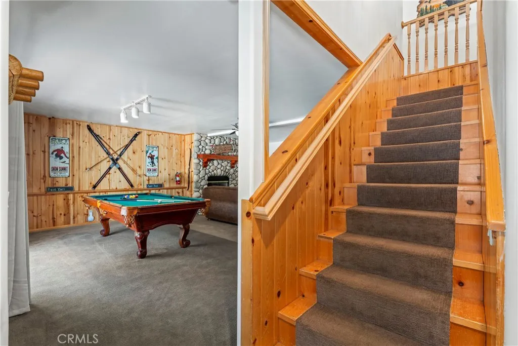 Your Mountain Escape Awaits Just Minutes from Snow Summit and Bear Mountain! This beautifully maintained log-style home delivers the ultimate Big Bear lifestylewhether you're looking for a full-time residence, vacation getaway, or short-term rental investment. Ideally located less than 5 minutes to Snow Summit and Bear Mountain, this 3-bedroom, 3-bathroom home offers 2,409 sq ft of spacious, versatile living. Step inside to discover a light-filled Great Room with soaring vaulted tongue-and-groove ceilings, a cozy stone fireplace, and direct access to an oversized front deckperfect for morning coffee or evening gatherings. The open-concept kitchen is designed for entertaining, featuring granite countertops, stainless steel appliances, a custom range hood, and a large breakfast bar. A convenient door leads to the back deck and fully fenced yardgreat for pets, kids, or just relaxing in nature. Downstairs, you'll find a HUGE game/media room thats a total showstoppercomplete with a 75 cinema-style TV, pool table, arcade game, stone fireplace, and a full bathroom. Its the perfect space to entertain or unwind after a day on the slopes. Other features include: * Oversized attached 2 car garage with space for all your mountain toys * Level parking and covered entry for easy, year-round access * Updated flooring and fresh, mountain-style finishes throughout * Spacious decks and a large yard - ideal for BBQs and outdoor fun Most furnishings are negotiable, so you can move right in and start enjoying mountain living from day one. This is more than just a homeits a lifestyle. Dont miss