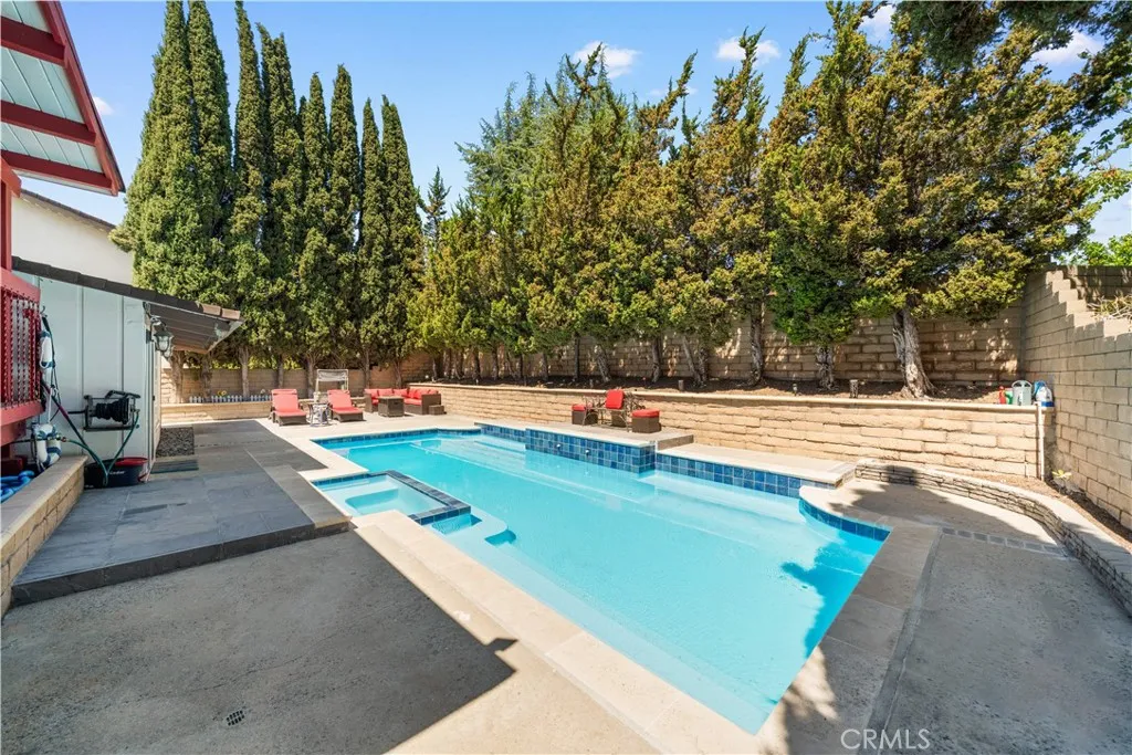 Sharp Tri-Level in Walnut School District. 4 bedrooms 3 remodeled bathrooms, Formal living room with vaulted ceiling, Formal dining room with vaulted ceiling, Remodeled kitchen with chefs stainless steel stove, Huge family room with fireplace and wet bar. NEW interior paint, New wood shutters throughout, New marble flooring in entry, dining room and kitchen, New crystal chandeliers, Wainscoting, Remodeled pool and storage under covered patio deck and much more. 3 car garage with automatic garage door openers. Leased Solar System. 1 block away from Chaparral Middle School, 1/2 mile to Maple Hill Elementary School and 1.5 miles to Diamond Bar High School. Must see home. https://vimeo.com/1117993552