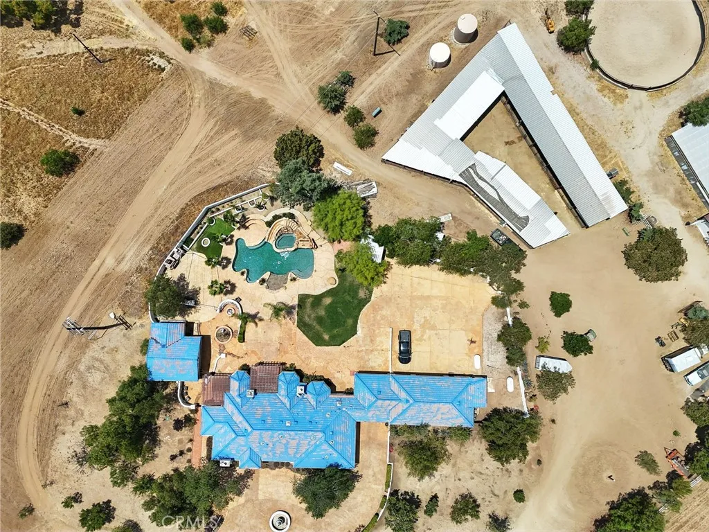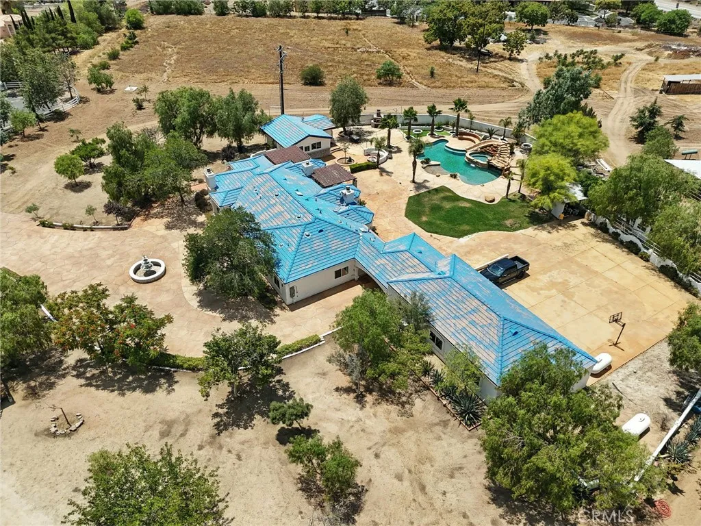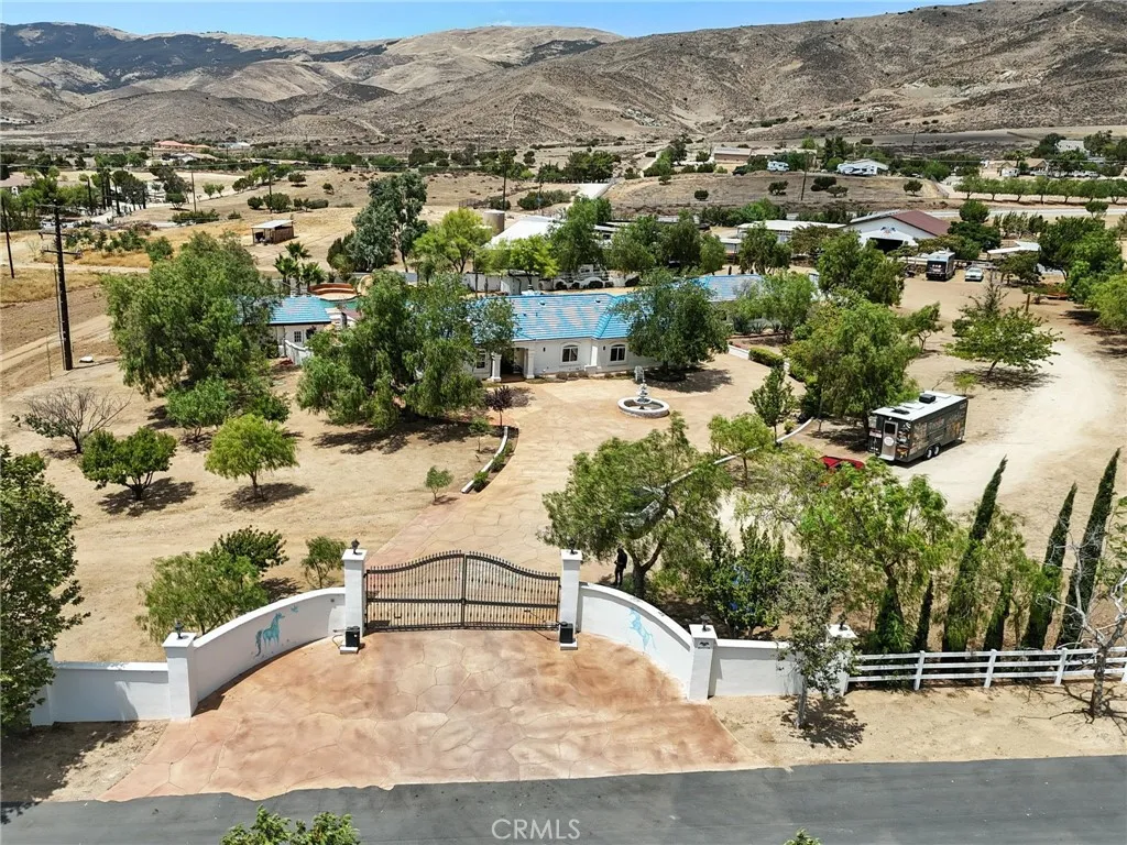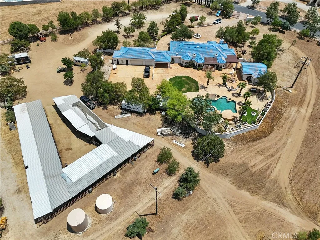 Welcome to this single-story, exceptional 5+ acre property located in the highly desirable Southwind Estates. This private, gated residence offers 5 bedrooms, 3 bathrooms, and a sparkling pool with a serene water fall, built-in barbecue surrounded by lush fruit and palm trees. Equestrian and agricultural enthusiasts will appreciate the 6,000 sq. ft. barn, 9,500 sq. ft. mare stalls, and a fully equipped greenhouse. The outdoor kitchen is perfect for entertaining, while the entire property is secured with sturdy 2.5" rail metal pipe fencing reinforced with stud wire. Enjoy complete self-sufficiency with an OWNED WELL producing 1012 gallons per minute, a 500-gallon owned propane tank, and owned solar for energy efficiency. A rare combination of privacy, functionality, and resort-style livingready for your lifestyle or business needs.