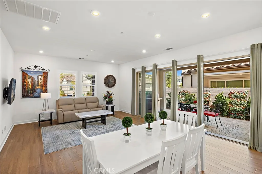 Fabulous corner lot on quite street. This DETACHED SFR is beautifully located in the 55+ community of Pearl at Rienda and lives like a single story home with approximately 2,144 sq ft including two bedrooms, three full bathrooms, a downstairs powder room plus upstairs loft or third bedroom with its own full bathroom. Owners have added owned, and fully paid for, Solar for reduce electricity costs. The perfect open design for luxury living in Rancho Mission Viejo. There is a spacious great room full of natural light that seamlessly transitions to a wonderful open patio. The elegant great room flows into the massive kitchen area with beautifully upgraded backsplash, white wood cabinets with sliding drawers and automatic soft close, high end GE Monogram appliances plus white wood shutters throughout and a downstairs half bathroom. The owner is leaving the washer and dryer, built in refrigerator and all appliances for your convenience. Enjoy the exquisite Main Floor Primary Suite with walk in closet, dual sinks with walk in shower plus separate area for an office, sewing or gift wrapping. The secondary bedroom, also downstairs, is spacious and roomy with its own ensuite full bathroom including separate shower and tub. The upstairs loft area is spacious and can be a game room or a third large bedroom, this area has a closet and its own separate full bathroom. The interior laundry room is also downstairs for convenience and the attached 2 car garage is complete with epoxy floor. The association has a wide range of amenities and activities designed to enrich your lifestyle, enjoy a
