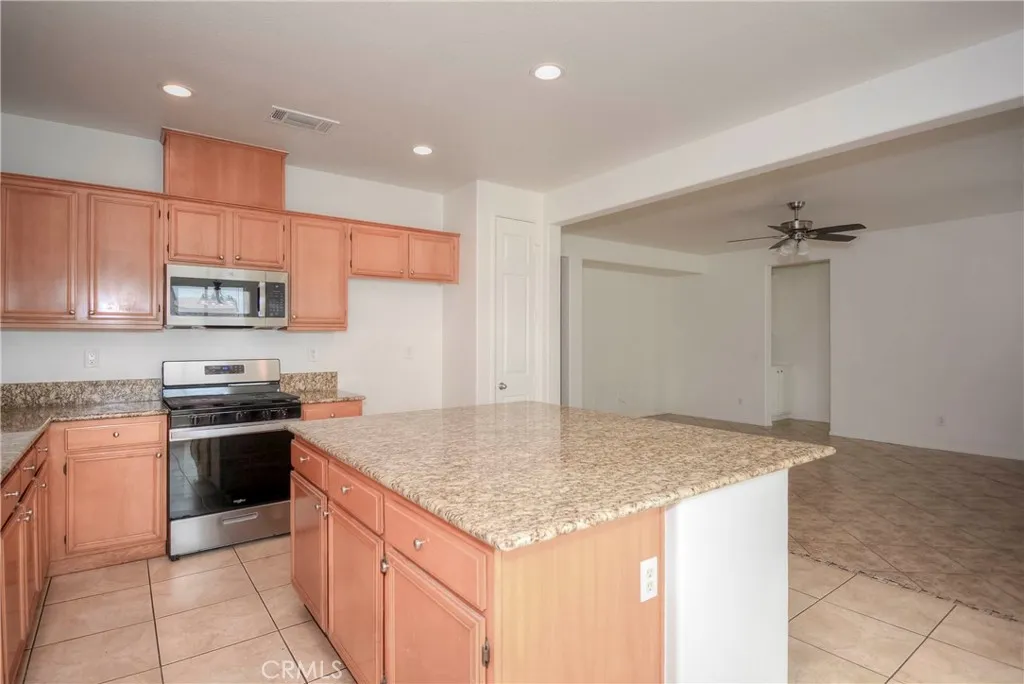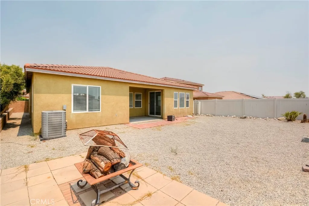 Discover this stunning home nestled in the sought-after Skyborne community of Desert Hot Springs. The residence features four bedrooms, two full bathrooms, and a two-car garage. The living room is airy and bright, while the expansive kitchen boasts elegant granite countertops, a large island with bar seating, stainless steel appliances, ample cabinet space. The kitchen flows into the living room, ideal for family gatherings. Enjoy recessed ceiling lights, ceiling fans, high ceilings and tile and wood laminate flooring through out the house. A sliding door leads from the dining area and the primary room to the backyard. The primary suite includes a spacious bedroom, large walk-in closet, and a bathroom with dual sinks, a separate walk-in shower, and a bathtub. Three additional well-proportioned bedrooms are included and a full bathroom. The covered patio offers additional space, perfect for outdoor entertainment. The laundry room's convenient location near the garage adds to the home's thoughtful layout. The backyard is drought-resistant and low-maintenance, offering water savings. Skyborne community amenities enhance the living experience with a community pool, BBQ areas/parks, a dog park, and private gates. Close proximity to Palm Springs, restaurants, shopping, casinos, and entertainment.