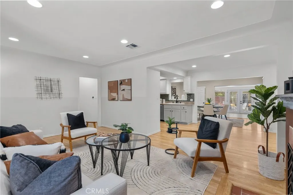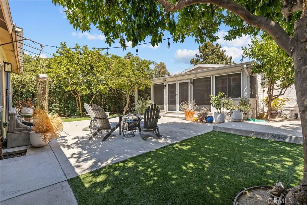 Set in the heart of desirable North Hollywood in the most secure part is this 1870 sq ft 3 bed 2 bath home with an additional 411 sq ft soundproofed recording studio in the back garden with an additional 375 sq ft covered carport.Owner has spent 150K to upgrade and improve house including Scrimsafe security screens all round. Hardwood floors throughout with the exception of the sun room which is tiled.Gas burning fireplace in the comfortable living room. Stainless steel appliances,granite countertops.Remodeled bathrooms with the primary having all new units and large walk-in shower. Large walk in closet in primary. Newly installed "pantry closet" in dining area.Opposite side of the house has 2 bedrooms and bathroom all off one hallway. Going towards the back of the house is a very large sun room which is tiled and has wrap around windows to enjoy the view of the back garden and the fruit trees, grapefruit,orange,lemon and avocado.In the backyard is a soothing waterfall also strung fairy lights, with 2 grassed areas separated by hard surfaced area for enjoying . Then there is the soundproofed studio and covered carport which is great for outdoor entertaining in the shade. There is a storage shed in its own area off the back yard where the tank less water heater is situated on the side of the house. There is a double gate leading on the the service road. Just a block to North Hollywood's favorite dogpark and a few blocks to good transit service. This is a lovely move in property with much spent to keep it in top condition and a full list of recent improvements can be supplied