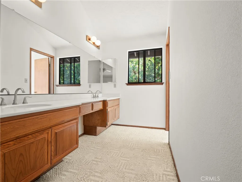 Welcome to this charming home located in the highly sought-after community of Happy Valley in Newhall. Nestled at the end of a quiet cul-de-sac, this property boasts beautiful curb appeal with mature trees providing ample shade, an oversized brick driveway, a spacious three-car garage and solar. Step through the double door entry into an expansive living room featuring beamed ceilings and a striking brick fireplace, seamlessly flowing into the formal dining room. The generous family room opens to a cozy eating area and a large kitchen complete with a charming bay window, abundant cabinetry, and extensive counter space. A convenient laundry room with extra storage, and powder room for guests completes the lower level. Upstairs, youll find a ginormous primary suite with a separate sitting area perfect for a nursery, home office or 4th bedroom, and an ensuite bathroom with a soaking tub and glass-enclosed walk-in shower. Two additional well-sized bedrooms share a full bathroom with dual vanities. Dual tree-lined yards with grassy areas, a spacious covered pergola patio, and a built-in cooking stationideal for entertaining. Located in the heart of Newhall near Old Town Newhall Main Street, this home is close to parks, award-winning schools, restaurants, shopping, and offers easy freeway access. Best of all, there are no HOA fees and no Mello-Roos taxes. Dont miss this amazing opportunity to become the second owner of this home!!!!