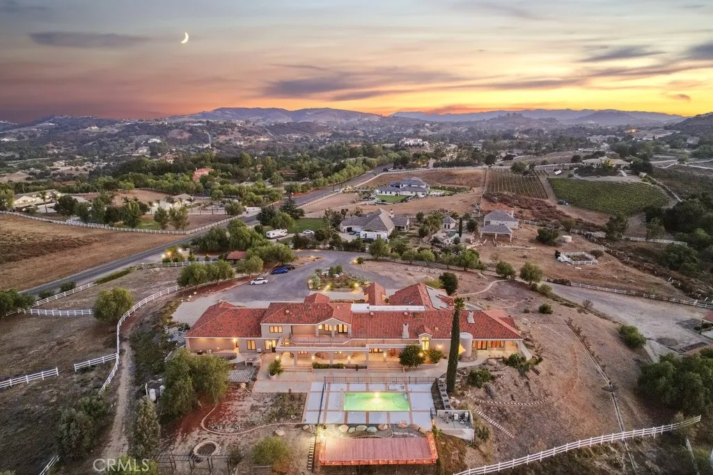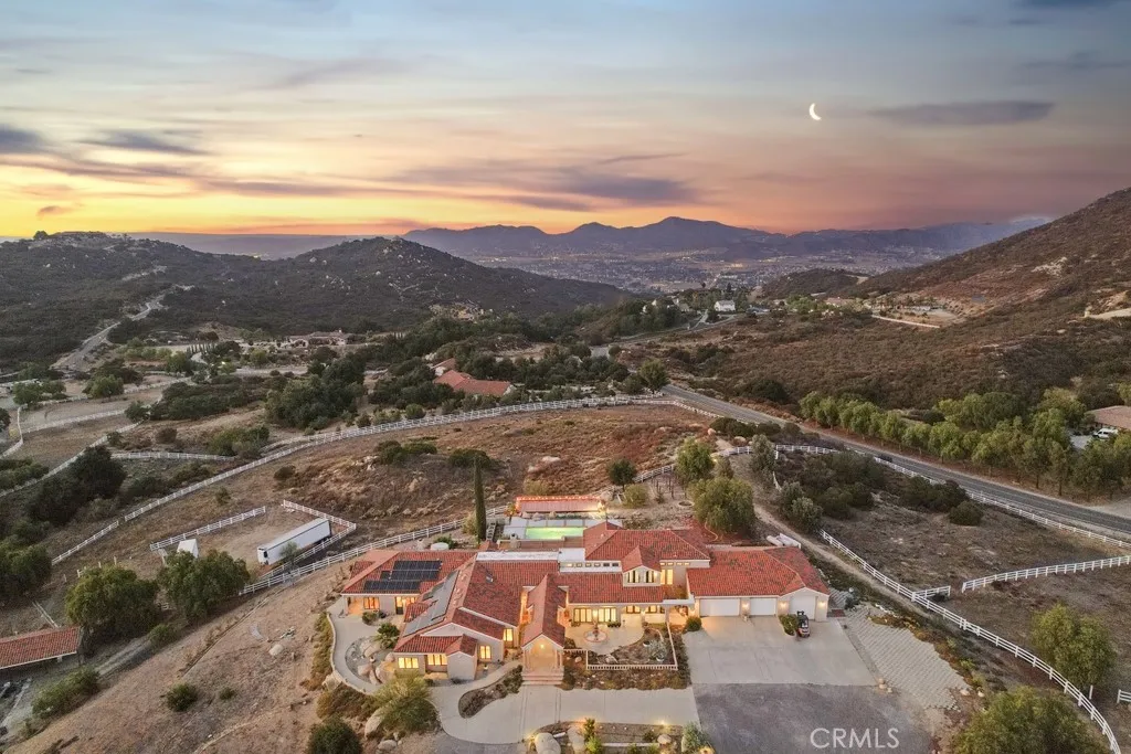 HUGE PRICE REDUCTION! Beautiful Grand Equestrian Estate with Panoramic Views & Endless Possibilities in La Cresta. Set atop 5.55 breathtaking acres, this spectacular La Cresta equestrian estate offers panoramic views from every window, luxurious living spaces, and versatile additions including a studio casita and a converted caretaker home attached to the barn. A 5-stall barn, RV garage, fenced pool with view deck & outdoor kitchen, and indoor spa make this a true dream property. Enter through solid wood double doors into a stunning foyer with terra cotta tile, leading to formal living and dining rooms featuring marble floors, wood-beamed vaulted ceilings, and oversized windows showcasing majestic mountain and garden views. The grand family room impresses with a fireplace, wood floors, custom built-ins, and French doors to the patio and pool. The spacious kitchen includes granite counters, wood cabinetry, a large island, and views of the pool and mountains. A den or office, additional flex space with built-ins, and access to the spa room offer flexible living. The primary suite boasts incredible views, a fireplace, private office, outdoor access, and a luxurious en suite with soaking tub, dual vanities, and two walk-in closets. Upstairs via two staircases, find a spacious loft, 3 bedrooms, and a huge balcony. Two junior suites downstairs feature private baths and walk-in closets, plus an additional den/bedroom. The studio casita includes a full bath, walk-in closet, and kitchenette space. The attached barn unit offers a living area, kitchen, 2 bedrooms, and a bathroomperfec