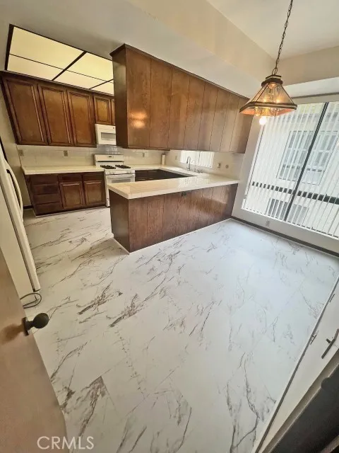 Dont miss out on this rare-to-find Top Floor with Street and Mountain view condo in the heart of Sherman Oaks. Located at the end of a cul-de-sac and walking distance to Ventura Blvd., where you can find all kinds of restaurants and entertainment. The generous layout of this home provides entertaining space and everyday living comfort. A single-level unit is one of the largest models in the complex. The entryway has a tray ceiling & wet bar with mirror glass display shelves, and a built-in wall unit in the living room. Spacious light-filled living room with wood floors and a gas fireplace, formal dining area with sliding doors leading to a private balcony with beautiful views of the mountains. Large kitchen with tile counters, including a gas range, oven, brand new built-in microwave, dishwasher, refrigerator, and ample cabinetry for storage. A casual eating area adjoining the kitchen, perfect for family gatherings. Huge master bedroom with a large walk-in closet, brand-new carpet. Second bedroom with mirrored closet doors & an en-suite bathroom with a walk-in shower. Powder room near the entry, convenient for guests. Laundry area inside the unit. 2 side-by-side assigned parking spaces on ground level and secured lobby & parking structure. HOA covers water, trash, master insurance policy & outside maintenance. HOA amenities: Pool & Spa, BBQ, Recreation room with kitchen, Sauna room. Guest parking spaces are available in the parking garage.