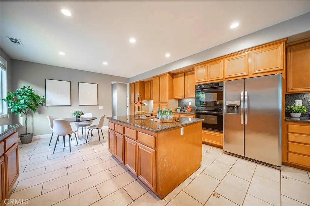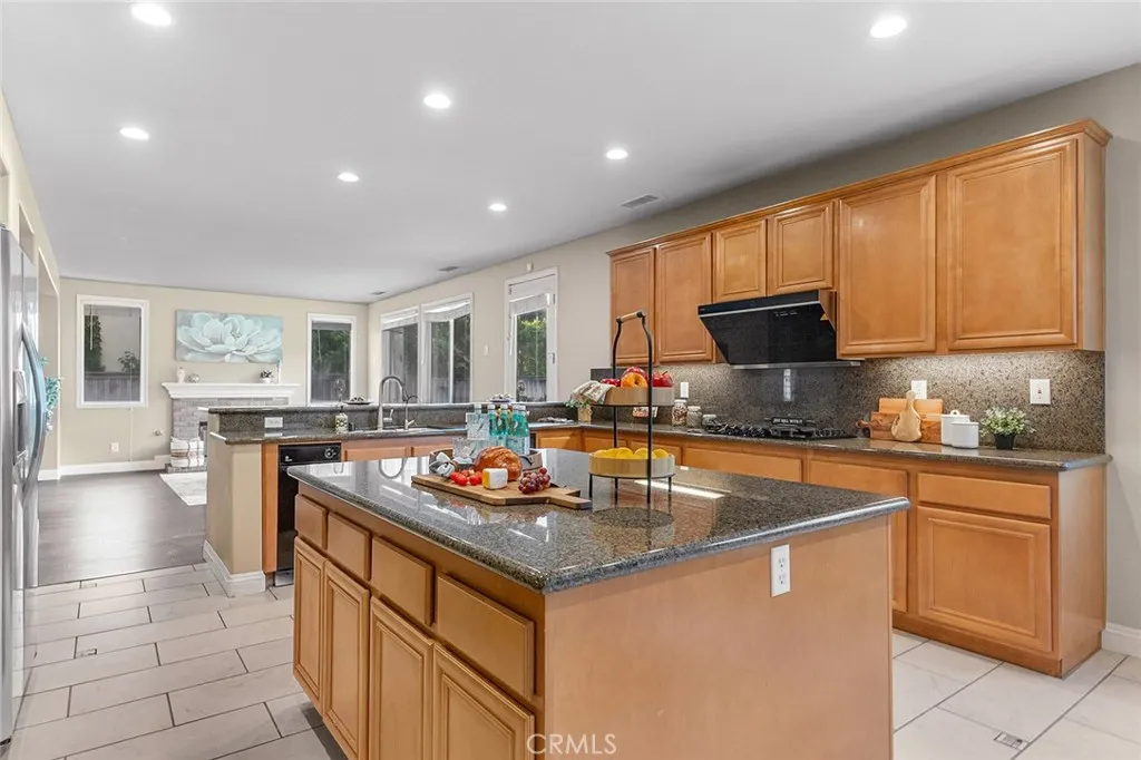 Spacious & inviting home with ideal layout for modern living featuring gorgeous XL kitchen, upgraded primary bathroom, window casings, rich wood, tile & carpet floorings, a roomy tandem 4-CAR garage, a sizable side yard offering an abundance space for your outdoor toys & NO HOA. Great curb appeal with lush landscaping, curved steps leading to the distinctive arched entryway & a charming front porch. Experience the size of the home featuring a grand entrance with soaring cathedral ceiling & a seamless flow into the light-filled formal living room & dining room area- perfect for entertaining & family gatherings. Main floor also features a convenient full bathroom & bedroom for overnight guests, senior roommates or for use as an office. Continue on toward the Great Room - the kitchen, informal dining & family room areas all wrapped up into one fun space great for entertaining. Well- appointed XL kitchen is a true centerpiece, boasting of granite countertops & backsplash, an abundance of storage, floor-to-ceiling cabinetry, a built-in desk and a HUGE center island offering extra storage, additional prep space, counter seating & the perfect placement for setting up a appetizer station when hosting. Suitably located near the kitchen for multitasking is a large laundry room with sink & access to the backyard. Enjoy casual meals in the eat-in kitchen or at the breakfast counter convenient for everyday busy lifestyle & quiick meals on the go. Adjacent is a warm & welcoming family room featuring an entertainment center niche & a charming brick fireplace ideal for cozy evenings & TV w