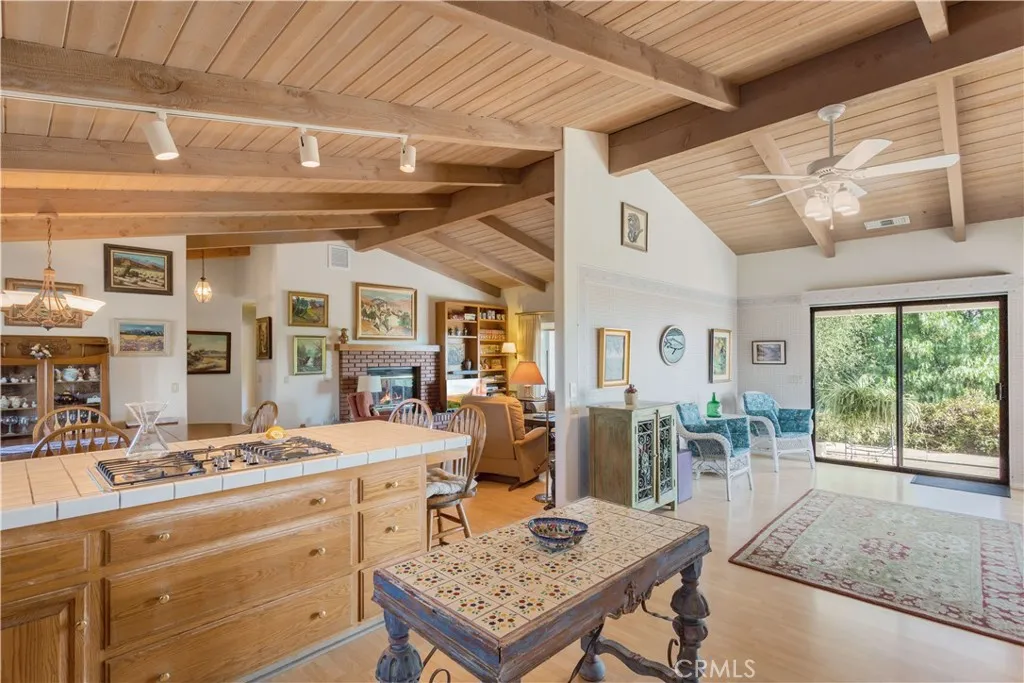 Opportunity, opportunity, opportunity! Opportunity abounds in this original sprawling single-story home in the rarely-on-the-market prestigious Tumble Creek Estates where renovated properties sell for well over a million dollars. This home features a total of 4 bedrooms, 3.5 bathrooms, and a 3-car garage (with a sink and toilet), all set on a very private and usable almost flat 1.17-acre private lot. The main residence is approximately 1,947 sq. ft. and has 3-bedrooms and 2 baths and boasts soaring wood-beamed ceilings. In addition to this square footage is an attached 1-bedroom, 1-bathroom studio which provides incredible versatilityideal as an in-law suite, private office, art studio, or income-generating ADU, bringing the total square footage to around 2,250 sq ft. The open-concept kitchen, complete with a large wrap around counter with seating and stainless-steel appliances (range and double ovens are almost new), flows seamlessly into the oversized dining and family room with cozy fireplaceideal for entertaining. The kitchen has two separate dining/eating areas plus a built-in desk. Outdoors, enjoy the peaceful privacy of your nearly flat lot with southwest-facing views toward Sleeping Indian. There's ample room to add a pool, workshop, or further customize the landscape to your vision. The covered rear patio and California sunroom offer extended outdoor living spaces, perfect for enjoying Fallbrooks mild climate year-round. You are surrounded by million-dollar homes, plenty of room for expansion, and low HOA and taxes. Whether you're looking for a multi-generational e