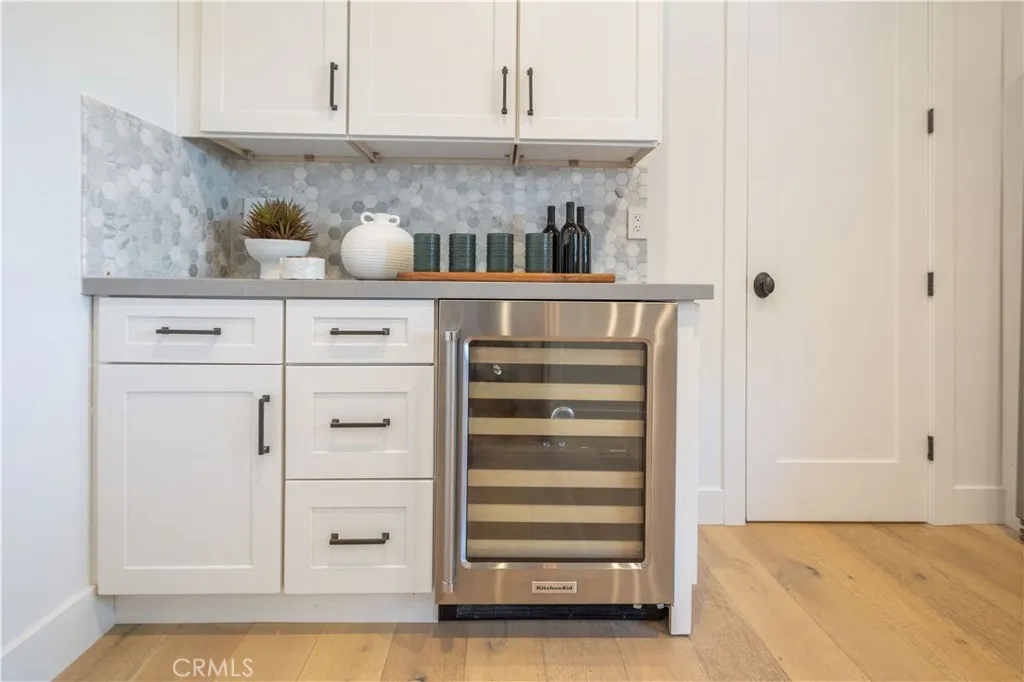 Located on a spacious corner lot in Eastside Costa Mesa, this exceptionally maintained home was built in 2019 and still feels fresh, stylish, and thoughtfully designed. The layout offers a true single-level living experience with all four bedrooms and three bathrooms on the main floor, complemented by ten-foot ceilings, wide-plank wood floors, and eight-foot interior doors throughout. The open-concept kitchen features a tumbled Carrara marble backsplash, walk-in pantry, KitchenAid Professional Series appliances, built-in wine fridge, and custom shelving. The primary suite is a true retreat, offering two oversized walk-in closets and a spa-inspired bathroom with marble floors, a Victoria and Albert soaking tub, and a full-length LED mirror. Above the garage, a generous 690 square foot bonus suite with its own entrance, bathroom, and dedicated air conditioning creates the perfect space for a guest suite, home office, gym, or creative studio. Energy-efficient upgrades include a solar panel system, Tesla batteries, tankless water heater, and 220V outlet in the garage for electric vehicle charging. The oversized two-car garage features an eight-foot roll-up door and has space to potentially fit a third vehicle. There is also dedicated parking for RV or boat parking. The exterior includes low-maintenance turf, mature fruit trees, a block wall for privacy, and space to add a pool. A covered front porch with a classic Dutch door offers charming curb appeal, and a nearly 700 square foot rooftop deck provides an additional private space for relaxing or entertaining. Ideally located n