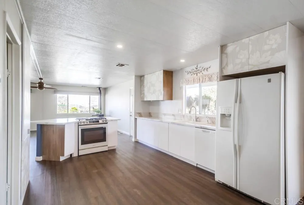 Enjoy breathtaking lake and mountain views from this beautifully maintained 2-bedroom, 2-bath home located in the highly desirable 55+ gated community of Lake Jennings Park Estates. Large picture windows fill the living room with natural light, complemented by custom window shades and a cozy corner pellet stove, perfect for cool evenings. The thoughtfully designed kitchen features an island with gas cooktop and bar seating, bright white cabinetry, and ample counter space, creating an inviting space for cooking and entertaining. A spacious family room opens through a sliding glass door to the covered front porch and expansive patio area, ideal for relaxing or hosting guests while taking in the views. The outdoor space offers privacy, mature landscaping, and a large storage shed that can double as a workshop or hobby area. Residents enjoy resort-style amenities including a clubhouse with full kitchen and fireplace, library, game room with pool and card tables, heated pool, spa, dog park, and RV parking. All for a low monthly HOA fee with no space rent! Conveniently located near shopping, dining, and freeway access, this home offers the perfect blend of comfort, community, and scenic beauty in one of Lakesides premier 55+ neighborhoods.