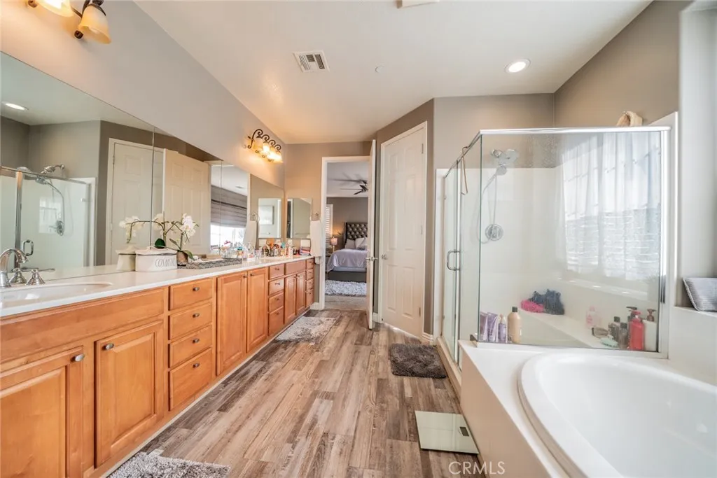 Welcome to your dream Pool home! This stunning 5-bedroom, 3.5-bath residence boasts 2,688 sq ft of living space on a 7,821 sq ft lot and is loaded with upgrades inside and out. Step inside to find beautiful laminate flooring throughout, plantation shutters, double-pane windows, and motorized shades. The spacious layout includes a formal living and dining room, a large family room, and a downstairs bedroom with a full bath perfect for guests.The kitchen features quartz countertops, new cabinets, stainless steel appliances, a breakfast bar, and abundant storage. Upstairs, the primary suite offers a walk-in closet, dual sinks, a soaking tub, and a separate shower. Solar panels $145 a month ,upgraded front yard and driveway. The Remodeled backyard is an entertainers paradise with a brand-new pool, gorgeous landscaping, a fire pit area, new lighting, and a brand-new shed plus breathtaking mountain views .Hypoxi garage flooring and a smart Wi-Fi sprinkler system. Located in a quiet, beautiful neighborhood within the Etiwanda School District, close to shopping, schools, and freeways. No HOA! This Alexa-enabled smart home is completely turnkey and ready for its new owner.