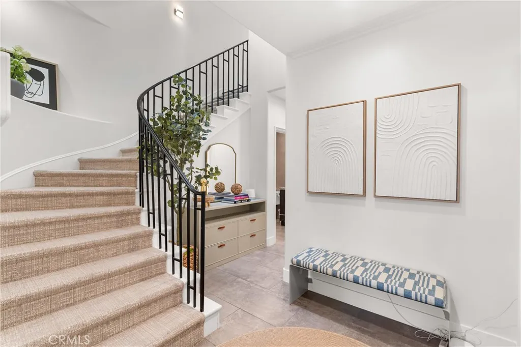 Experience iconic Corona Del Mar living in this completely reimagined 3-bedroom, 2.5-bath ocean-view home, offering unparalleled comfort and styleas well as parking for up to 9 cars! Situated on a quiet cul-de-sac just one block from the ocean on the coveted 300 block of Carnation Ave. and featuring stunning panoramic views of Newport Harbor, Fashion Island, and the Pacific Ocean, this idyllic home redefines the modern seaside lifestyle. Step inside to discover a light-filled, open-concept layout enhanced by designer finishes throughout including wide-plank wood flooring, modern lighting, custom paint, and ultra-quiet ceiling fans. The spacious living room features a wall of custom windows that invite natural light and fresh ocean breezes, complemented by a new contemporary fireplace with wood mantle. The gourmet chefs kitchen is a showstopper, equipped with stone countertops, modern cabinetry accented by stylish herringbone backsplash, an oversized island with waterfall edges, and top-of-the-line stainless steel appliances: 6-burner range with double oven, hood, microwave, warming drawer, oversized refrigerator, and wine fridge, ideal for culinary enthusiasts. A chic wet bar with a second wine fridge and a cozy office nook completes the space, perfect for both entertaining and everyday living. Upstairs, the resort-inspired primary suite features a cozy fireplace, wall-mounted flat-screen TV, Walk-In Closet, and built-in designer wardrobes with elegant lighting. The spa-like en-suite bath includes dual vanities, a soaking tub, a walk-in shower with skylight, and custom tile