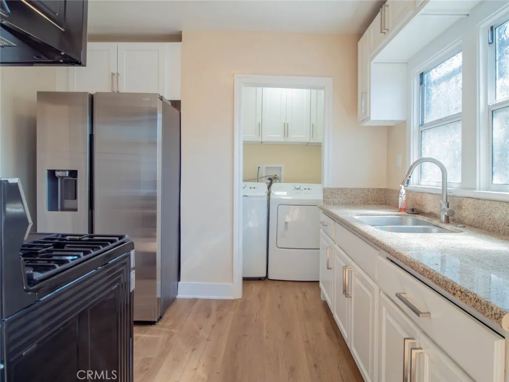 Introducing an outstanding investment opportunity in the heart of Los Angeles, mere minutes away from the prestigious USC campus! This captivating three-unit property showcases two units at the front, each boasting 1 bedroom and 1 bathroom, offering a generous 768 SqFt of living space. In addition, there's a delightful third unit situated at the back, with 2 bedrooms and 1 bathroom, providing a comfortable 580 SqFt of living space. Upon entering the first front unit, you'll be greeted by a welcoming living area, complete with a cooling ceiling fan and a dining area with large windows that allow abundant natural light to flood the space, creating a warm and inviting atmosphere. The kitchen boasts stainless steel appliances and ample cabinet space, perfect for all your storage needs. Convenience is key, as the unit comes equipped with its own washer/dryer, adding an extra layer of practicality. The bathroom features a shower over tub arrangement, and the bedroom offers a spacious walk-in closet, providing an ideal sanctuary for relaxation. Conveniently situated above the two-car garage, the third unit offers a sense of privacy and tranquility, making it the ideal space for tenants seeking a peaceful retreat. With its two spacious bedrooms, both equipped with walk-in closets, this unit offers comfort and style in equal measure. The bathroom includes a contemporary shower stall, ensuring a refreshing start to the day. Situated in a bustling area, this property is surrounded by an array of enticing restaurants, vibrant shops, and an easy access to the freeway, making it a desira