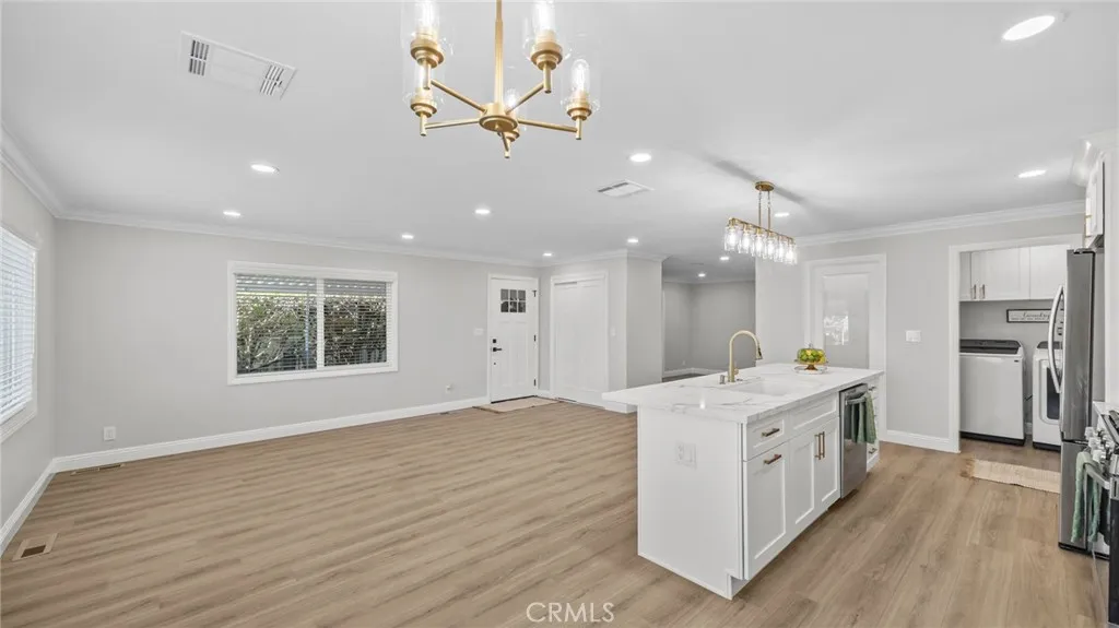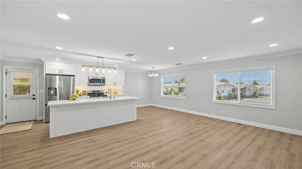 Senior Park Community 55+..This is the perfect opportunity to buy this REMODELED bright spacious 2 bed, 2 bath home with a GREAT LOCATION with a secluded patio in the back. Just like New! Lets enter this beautiful home from the large, welcoming porch. As we walk in, we are greeted by the open living room and dining room area that is bright and beautiful. This home has an open concept great for entertaining friends and family. The kitchen features quartz countertops, a large island, soft close doors and drawers, built-in trash/recycling cabinet, all new appliances. The laundry room is off the kitchen in its own room. There is a large walk-in pantry! As we continue our walk, we walk towards the back of the home, to the right we have the guest bedroom, to the left, we have a guest bath. Straight ahead is the primary bedroom with the mirrored closet doors and a big, beautiful bathroom that features dual sinks, an additional closet for more storage and a large walk-in shower with a bench. This home also features a bonus room that is finished just like the home, with large windows and a door that leads to the private back yard. This home has luxury vinyl laminate flooring throughout, new windows, crown molding, recessed lighting, new washer and dryer, remodeled from front to back! Just like new!