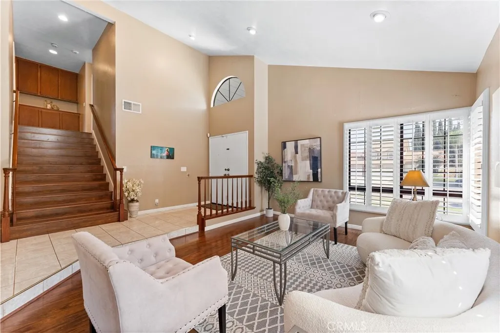 The Perfect Blend of Location, Comfort and Lifestyle in Cerritos. Located on a quiet cul de sac near Cerritos Park East, this 4-bedroom, 3-bathroom home offers 2,436 square feet of living space on a 6,032 square foot lot in the ABC Unified School District. The bright formal living room features soaring ceilings and flows into a dedicated dining area. The kitchen offers granite countertops, a gas cooktop, stainless steel dishwasher and abundant cabinetry, opening to the family room with a tile fireplace, wood floors and sliding doors to the covered patio. Upstairs, all bedrooms are spacious including the primary suite with fireplace, office nook, walk in closet and dual sink vanity. The backyard includes a covered patio with ceiling fan, fruit trees, vegetable garden space and lawn for outdoor entertaining. Additional features include an attached 2 car garage, separate laundry room and fresh landscaping. Close to Whitney High School, parks, shopping, dining and freeways.