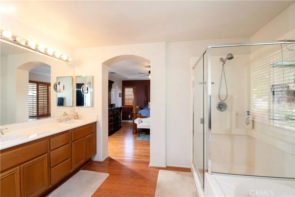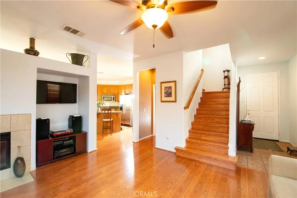 LOW HOA and NO MELLO ROOS! Home on a Quiet Cul-de-Sac nestled in a beautiful and very quiet neighborhood. Welcome to 29458 Shannon Ct a beautifully maintained two-story home tucked away at the end of a peaceful cul-de-sac in the sought-after Mint Canyon Community. The home boasts a generous 4 bedrooms and 2.5 bathrooms along with a thoughtful, open-concept floor plan designed for both entertaining or just enjoying a night in. Step inside to a bright and airy living space featuring hardwood laminate flooring. The formal living room boasts a cozy fireplace and open seating area. The well-appointed kitchen includes corian countertops, a center island, breakfast bar, recessed lighting, a double-door pantry, convention double ovens, built-in microwave, cooktop, dishwasher and refrigerator. The kitchen brings in warm rays bouncing off the beautiful hills. Outside, youll find your own private retreat a beautifully hard-scaped yard with mountain views, with large planters filled with greenery. A built in gas BBQ that offers vistas of picturesque mountains. Fully landscaped lighting with timers to have the perfect evening ambiance. Plenty of space to host BBQs or build a spa. Upstairs, a versatile loft includes a built-in office nook, ideal for remote work or study. The laundry room is conveniently located on the same level as the bedrooms allowing for easy access to washer and dryer. The primary suite is a true getaway, complete with dual walk-in closets, a spa-like bathroom with over sized jetted tub, dual sinks, and separate shower. The Primary bedroom is a large space with ple
