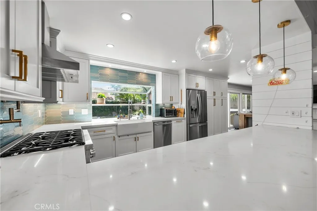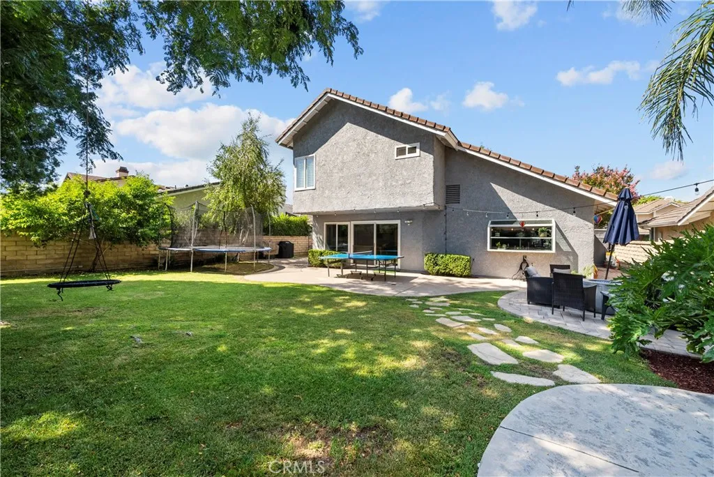 Youre going to LOVE this fantastic four-bedroom, three-bathroom home in one of Valencias most desirable neighborhoods, "Behind Granary Square". It is set at the end of a cul-de-sac surrounded by mature trees and just steps from the paseos and Almendra Park. Remodeled in 2020, it features a light and bright open concept kitchen with quartz countertops, stainless steel appliances, a huge breakfast bar for seating, a large garden window overlooking the backyard, and extensive cabinetry with large pull-out drawers, plus newer flooring, updated bathrooms, and soaring high ceilings that fill the home with natural light. The floor plan includes a downstairs bedroom and full bath, spacious living areas, and upstairs, three bedrooms and two full bathrooms. The backyard is perfect for both relaxation and play with a fire pit, jacuzzi, and patio area. Recent energy-efficient upgrades include HVAC system, ducting, dual-pane windows, whole-house fan, and water heater. The HOA is amazing with its low monthly dues and 3 community pools/spas. "Behind Granary Square" is Valencia living at its best with miles of paseo walking trails, award-winning schools, and nearby shopping, dining, and freeway accessall with a low HOA and no Mello Roos!