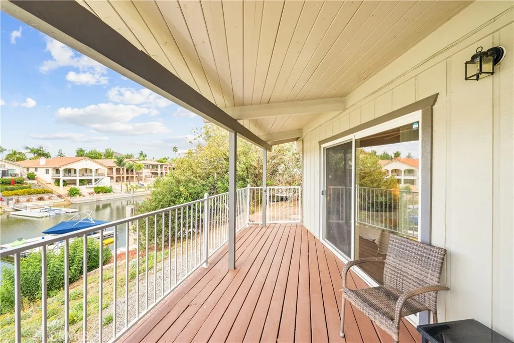 Enjoy true waterfront living in this rare 3-bedroom, 2-bath home situated on a generous pie shaped lot at the end of a quiet cul-de-sac. This single-story gem boasts a private boat dock and a spacious wrap around deck overlooking the water perfect for relaxing mornings and stunning sunsets. Inside, soaring vaulted wood-beam ceilings and a skylight create an open, airy feel. Floor-to-ceiling glass sliders flood the living space with natural light and provide seamless access to the deck and lake views. A dramatic stone fireplace anchors the great room, creating a cozy focal point. The kitchen is designed for entertaining and daily living alike, featuring stainless steel double ovens, a cooktop facing the living area, a large breakfast bar peninsula, and a pantry with pull-out shelving. Charming details like a garden window over the sink and stone accented breakfast bar add character. The master suite is a lakeside retreat with vaulted ceilings, a ceiling fan, and private deck access. Its en-suite bath includes a soaking tub, separate walk-in shower, dual sinks, and ample storage. Two additional bedrooms also offer vaulted ceilings and ceiling fans, with one providing private deck access and a walk-in closet. Step outside to your private boat dock and a terraced backyard stretching to the shoreline, perfect for water activities or creating a resort-like outdoor space. The attached 2-car garage and extended driveway provide ample parking for vehicles and guests. Living in Canyon Lake means access to resort-style amenities like a private lake for boating, fishing, swimming, an 1