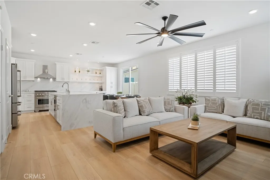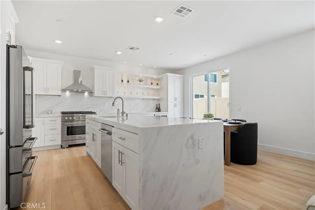 Welcome to this beautiful, upgraded home featuring a long driveway with a custom brand new kitchen with white shaker cabinets and a new kitchen sink. The new kitchen island was extended, allowing space for five barstools, it features marble countertops with a waterfall design. The kitchen also features a dry bar with shelves and lighting to display your favorite tequila or wine bottles. It comes with a built-in microwave and a wine refrigerator with an extra pantry for extra food or pots and pans storage. All brand new Zline kitchen appliances are included . The whole house was upgraded to Luxury vinyl plank and it also features designer ceiling fans in some rooms. This lot is a premium lot and the back yard is a nice size. The house also features brand new wood shutters and upgraded 5.5 inches baseboard throughout the entire house. The garage floor was painted with epoxy paint and this home is never lived in. Make this beautiful home your own! Murrieta residents enjoy great local amenities and attractions, including the Golf Club at Rancho California, endless local wineries, stunning natural landscapes and shopping at Promenade Temecula. Come and see it, It will not last!!