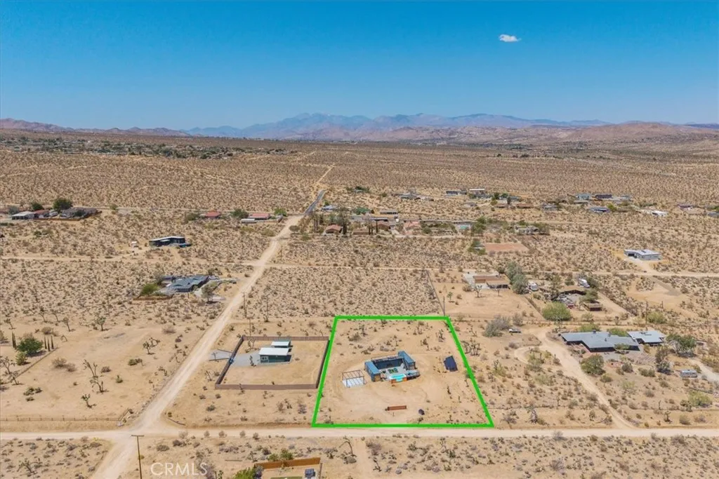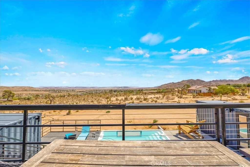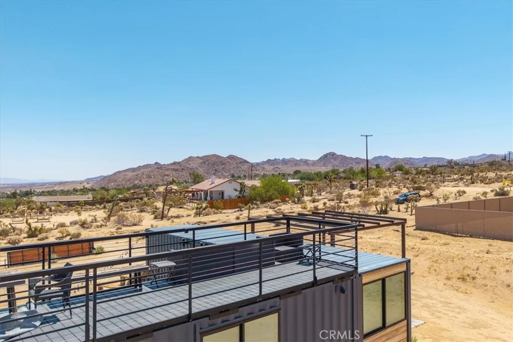 Welcome to 6816 Saddleback Rd, AKA Box on the Rox! A truly unique & ONE-OF-A-KIND fully-permitted Container POOL home located in the highly desirable town of Joshua Tree. This property is nicely situated on 1.25 acres of prime land complete with stunning desert & mountain views and is just minutes from downtown, the park entrance, shops, galleries, eateries & more. This 3 bedroom, 2 bath contemporary home was designed by renowned architect David Bailey and was built in 2022 with every feature intentionally chosen to bring you the perfect desert home, airbnb or weekend retreat. Complete with PAID SOLAR, 5 mini-splits (to keep you comfortable year round), a full size stackable washer & dryer, a large carport, EV Charger & a Fully Furnished Roof Top Deck! The kitchen includes full size stainless steel appliances & dining can be enjoyed both inside & out, compliments of the modern, electric roll-up door. The primary bedroom features an ensuite spa-like bathroom with 2 single sink vanities, an oversized walk-in shower with 2 rainfall shower-heads and a soaking tub for full relaxation. The additional bathroom also adorns a walk-in shower with a rainfall shower-head and all 3 bedrooms include queen size memory-foam mattresses and picture windows that let in an abundance of natural light. Outside is truly an entertainers dream, from the private Roof Top Deck to the awe-inspiring Pool (which can be adjusted to also be used as a hot-rub), it's truly the perfect place to unwind in nature but with the added bonus of modern comfort and convenience. This home is also being sold Fully Fur
