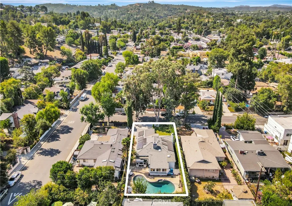 Private Resort-Style BEAUTFUL Pool Home South of the Boulevard in Woodland Hills. Welcome to 21907 De La Osa Street, a charming home with 1,535 sq ft of living space, with an open and flexible modern floor plan! The curb appeal is wonderfully manicured to perfection with the charm of a modern farm house, luscious green grass and adorable white fencing. This lovely home is as prettty as a picture! Inside, youll find a bright, comfortable layout with well-defined living spaces, offering both function and character. The previous owner opened up the third bedroom to create a versatile room that provides the perfect space for a home office, a large dining room or playroom, tailored to fit your lifestyle. Currently this stunning pool home is set up as a 2 bedroom, a home office, a huge family room plus a dining area and living room. A buyer can easily create a third bedrrom again. The home flows to the backyardyour own completely private resort retreat. The Pebble Tec pool sparkles under the sun, surrounded by lush landscaping and tall privacy barriers so you can relax and entertain without a single neighbors view. Smart features include 20 solar panels that are paid off and about 3 years old, an EV charger, security cameras and security doorbell. All of this is tucked away South of the Boulevard, located near award winning schools, upscale shops and well known restaurants as well as being minutes from the beach. This is a rare opportunity to own a warm, inviting pool home with exceptional privacy in one of the Valleys most desirable locations. You will be enchanted and impressed
