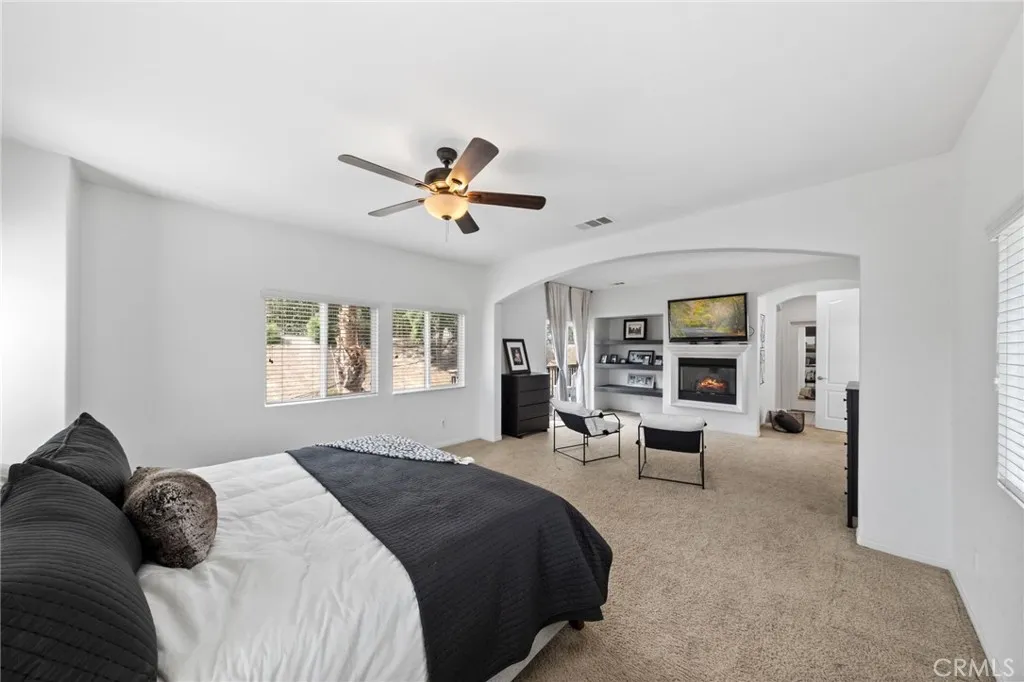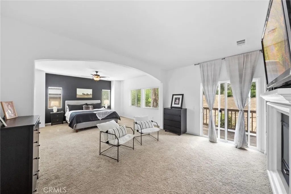 *MOTIVATED SELLERS *OWNED SOLAR * UPDATED HOME * LARGE POOL-SIZED LOT * GUARD-GATED COMMUNITY Beautifully updated 4-bedroom + LOFT modern farmhouse style home in the coveted guard-gated community of Greer Ranch! Set on a spacious 13,504 sq ft POOL-SIZED CORNER LOT, this 3,362 sq ft home features striking curb appeal with a crisp white exterior, black accents, and a 3-car tandem garage. Fully paid solar panels dramatically reduce electric costs, often bringing your SCE bill to zero! Step inside to soaring two-story ceilings, luxury vinyl plank flooring, and a recently painted neutral interior. The front living room, currently used as an office, includes crown molding, while the separate dining room opens to a generous side courtyard-perfect for dining under the stars or entertaining guests. The open-concept kitchen and family room sit at the rear of the home, featuring white cabinetry, quartz countertops, stainless steel appliances, modern lighting, and a stylish tile backsplash. A cozy fireplace anchors the family room, flanked by custom floating shelves that add charm and functionality. Ideal for multigenerational living or guests, the main floor offers a full bedroom and a bathroom with a walk-in shower. Upstairs, where BRAND NEW CARPET WAS JUST INSTALLED (not photographed) you'll find a spacious loft/bonus room with a ceiling fan, a laundry room with a sink and storage, 2 additional bedrooms with ceiling fans, and a shared bath with dual sinks. The private primary suite offers a quiet place to unwind, complete with its own balcony & fireplace. The ensuite bath includes a