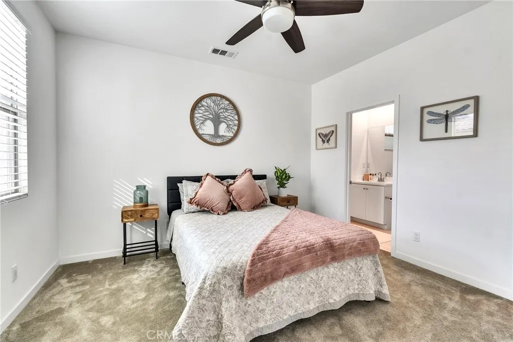 **TURNKEY & READY for MOVE-IN! Welcome to your dream home in the desirable Bedford Canyon community! Built in 2020, this stunning 3-bedroom, 3.5 bathroom condo offers 1,987 sq ft of stylish and functional living space. Each spacious bedroom features its own private en-suite bathroom and generouos closet, while a convenient half bath is located downstairs for guests. The modern kitchen is beautifully appointed with quartz countertops and a water filtration system at the sink, perfect for everyday living. High ceilings both upstairs and downstairs in an open floor plan create a bright, airy atmosphere that blends comfort with contemporary design. Step outside to a low-maintenance, landscaped backyard with a drip irrigation system, ideal for relaxing or entertaining. Located in a quiet, well-maintened neighborhood, residents enjoy an array of community amenities including sparkling swimming pools, cozy fire pits, barbecue areas, a playground, and scenic outdoor spaces, beautifully manicured, ideal for evening gatherings with family and friends. Additional features include two-one car garages with direct the condo. This home is situated in a prime location just off the 1-15 fwy, with convenient access to shopping and dining, including The Shops at Dos Lagos, Amazon Fresh grocery store, and top-rated schools in the Corona-Norco Unified School District. Only minutes away from the Eagle Glen Golf Course, experience the perfect balance of modern living, comfort, and convenience in this exceptional, highly sought out area in Bedford Canyon!!**