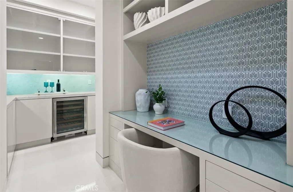 Situated within the prestigious guard-gated community of Pelican Crest, this remarkable custom estate offers approximately 10,310 square feet of refined modern European living, seamlessly blending timeless architecture with contemporary sophistication. Beyond the grand double glass-and-iron entry doors, a dramatic two-story foyer with a sweeping floating staircase and French limestone flooring sets the tone for the homes exceptional transitional design. Light-filled formal and casual spaces flow effortlessly, including a formal dining room with access to the grounds and a gourmet chefs kitchen appointed with Viking and Miele appliances, custom cabinetry, and elegant stone surfaces. The great room, anchored by a striking onyx fireplace and sophisticated wet bar, opens through three sets of French doors to the resort-like backyard, creating a natural extension of indoor and outdoor living. The lower level is dedicated to leisure and wellness, offering a steam room, sauna, gym, temperature-controlled wine cellar, and a state-of-the-art home theater with an adjoining lounge/game area. Upstairs, the luxurious primary suite features a spacious sitting area and spa-inspired bath with dual showers, under-lit onyx countertops, and a deep soaking tub. Additional bedroom suites each include their own beautifully finished bathrooms. Outdoors, the residences modern European influences are expressed through symmetrical design and the elegant use of thoughtful materials, creating a private resort setting complemented by breathtaking canyon and peekaboo ocean views. The grounds showcase an