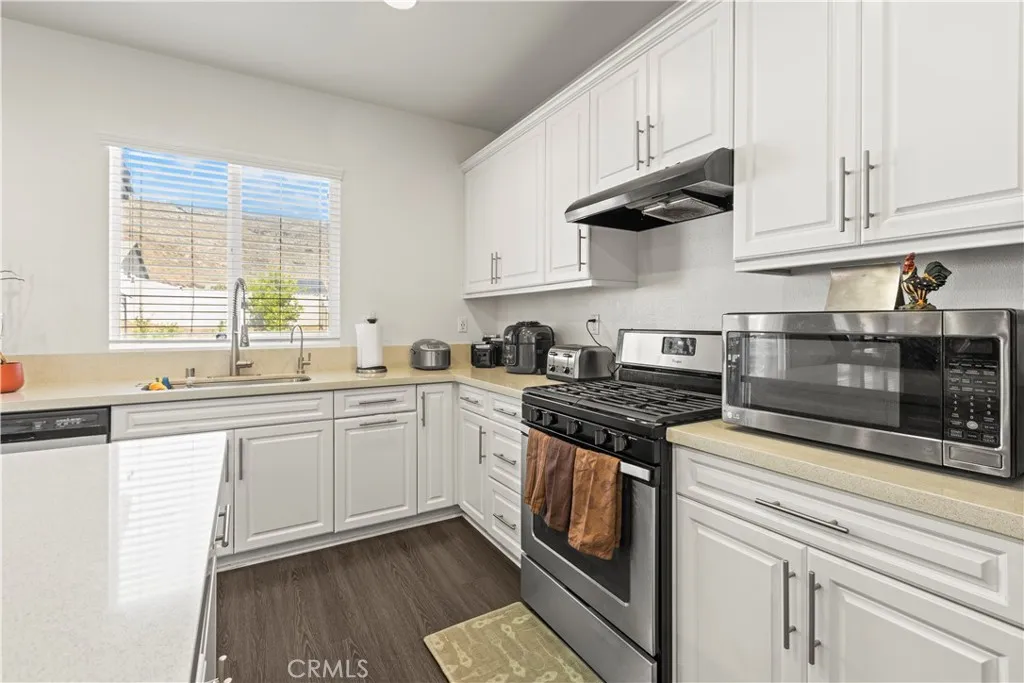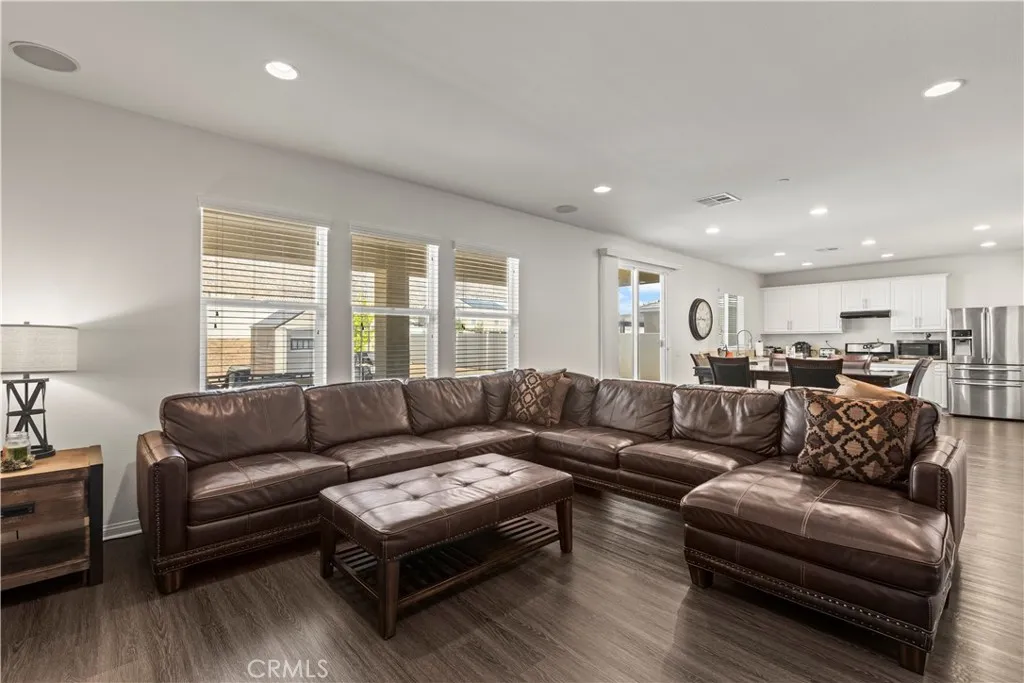 This exquisite residence, situated in the hills of Stonecrest at the cove, is an ideal location for your family. It boasts 5 bedrooms, three full bathrooms, and a two-car garage. The first floor features a generously sized bedroom and a full bathroom. Four bedrooms and a loft are situated on the second floor. For those seeking upgrades, this residence delivers. It features luxury vinyl flooring throughout, quartz countertops, 9-foot ceilings with recessed lighting, built-in sound system, a covered patio, vinyl fencing, a water softener system, and reverse osmosis drinking water. Additionally, this home is equipped with a built-in security system featuring cameras. The front yard showcases a drought-tolerant landscape. Ample parking is available at this cul-de-sac residence. Elementary school and community parks are within walking distance.