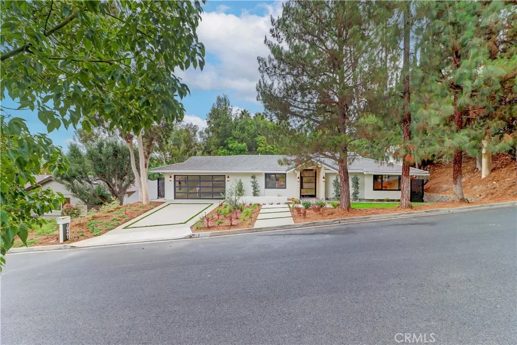 Searching for a single-story modern masterpiece tucked away amid the gentle slopes of North Tustin? This fully renovated 5-bedroom, 3-bath residence in the prestigious Cowan Heights neighborhood blends architectural elegance with everyday functionality on a private 0.37-acre lot, surrounded by mature trees and hillside serenity! From the moment you arrive, many sleek black-framed dual-pane windows and a custom metal pivot door set the tone for the design-forward touches that continue throughout the home. A striking stone archway and chandelier welcome you into an open floor plan filled with natural light from strategically placed skylights. Smooth drywall, soothing neutral hues, luxury vinyl flooring, and contemporary finishes create a clean, organic aesthetic that's both stylish and comfortable. The generous living room, centered around a sculptural bespoke plaster fireplace, flows effortlessly into a nearby dining alcove and kitchen ready for conversation and culinary endeavors. Cook with confidence using the French-inspired range beneath a handcrafted hood, surrounded by quartzite countertops, abundant cabinetry, stainless steel appliances, and a multi-seater island suitable for casual gatherings. A new mud room with a substantial pantry adds to the abode's many flexible spaces. Retreat to the primary bedroom with its patio access and spa-like ensuite featuring an oversized frameless shower with dual showerheads. A junior suite offers its own exterior entrance, pass-through bath, and a separate sitting areaideal for guests or multi-generational living. Every bath and clo
