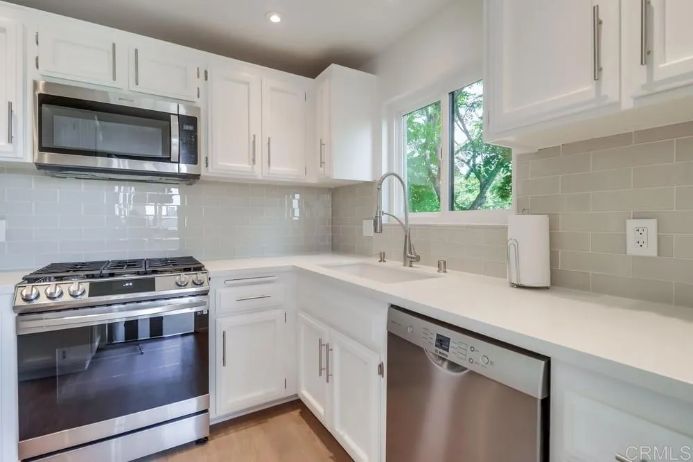 This property is a fully renovated, move-in ready 2 bedroom 2 bathroom townhome in a Prime San Diego location just west of Fashion Valley Center. High ceilings and abundant natural light create a bright, airy ambiance throughout. You'll love the open-concept dining area and living room area. This beautiful unit boasts 1058 sq. ft. of living space with views. Living room has fabulous gas fireplace and outside the living room space is a beautiful balcony with unobstructed views. A corner of the balcony houses new water heater. The fully remodeled kitchen includes new high end stainless steel appliances; gas stove, microwave, refrigerator, dishwasher. Bathrooms are completely renovated with brand new tile, shower enclosure, lighting fixtures, vanities. The unit has recessed lighting throughout as well as all new Milgard windows. This unit boasts an attached 1 car garage with lots of street parking and a large guest parking lot. The community boasts a beautiful spa like pool area with a large community room for entertaining. Located near UCSD, Fashion Valley, Mission Valley , Old Town, beaches, downtown and major freeways. Don't miss your chance to live in this very sought after, centrally located Community. Seller will consider crediting the buyer with 1 years' HOA dues in escrow with the right offer.